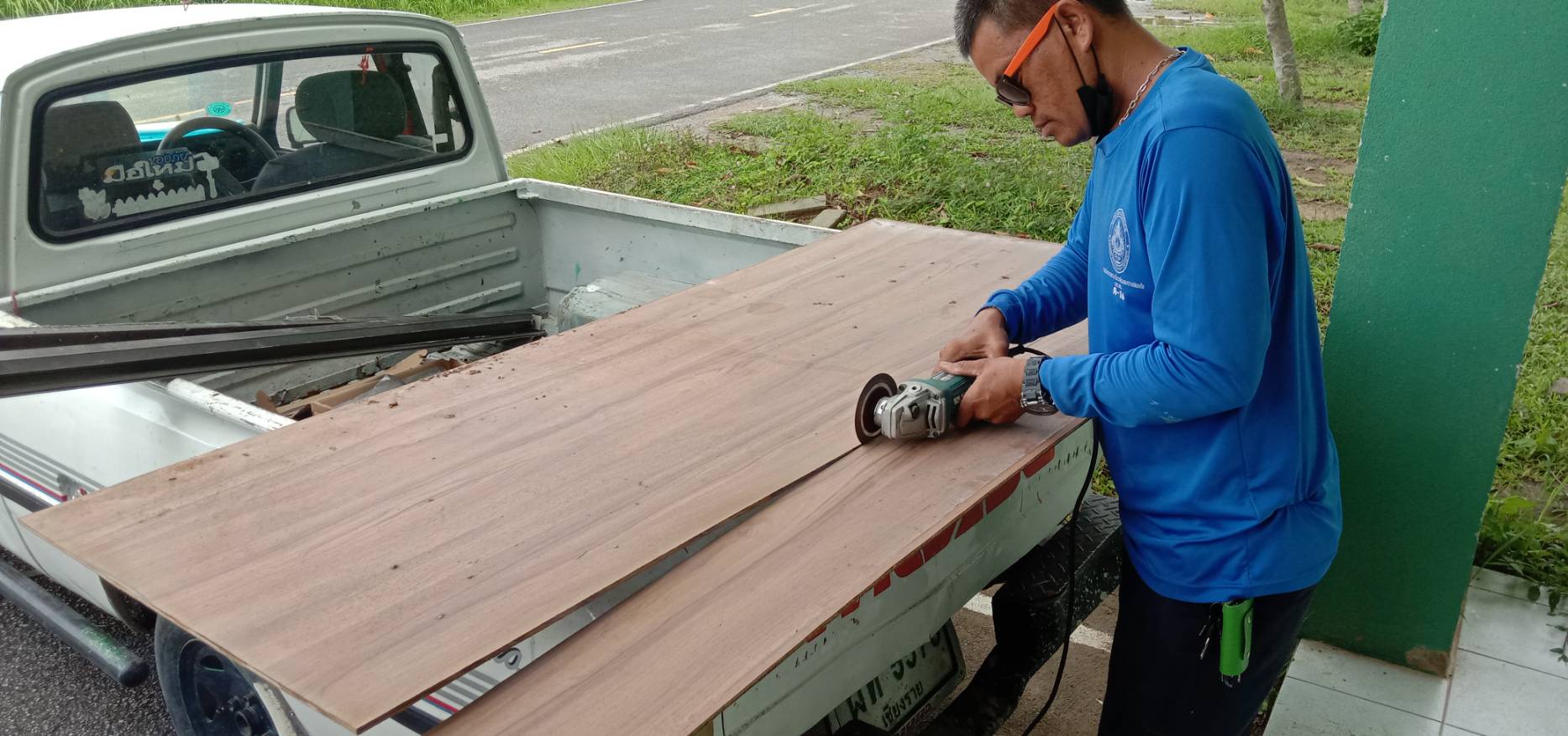 กองบริหารกายภาพสิ่งแวดล้อมและความปลอดภัย มร.ชร. ทำการซ่อมประตู ห้องประชาสัมพันธ์ ซ้าย-ขวา บริเวณอาคารโรงยิมเนเซี่ยม