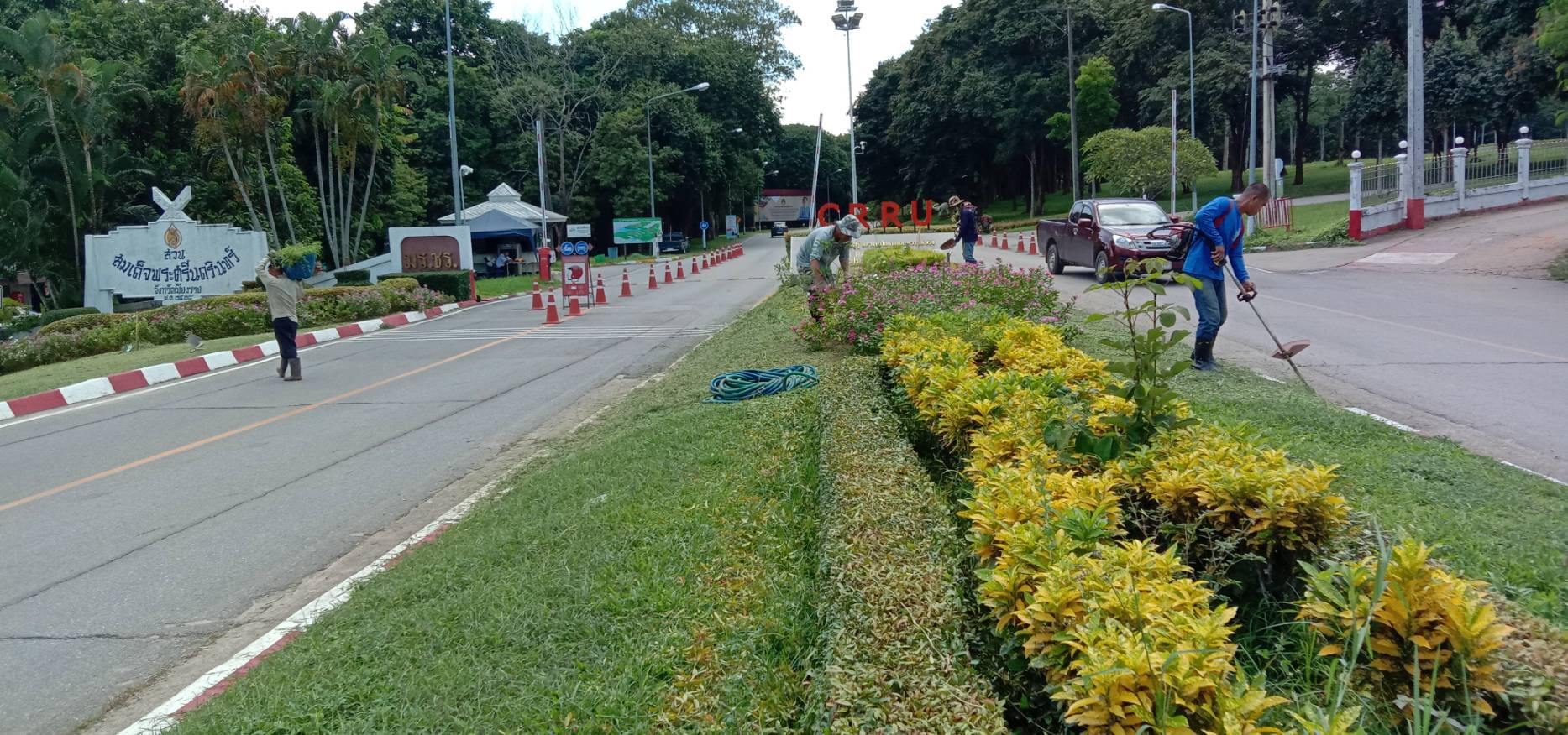 กองบริหารกายภาพสิ่งแวดล้อมและความปลอดภัย มร.ชร. ทำการพัฒนาพื้นที่บริเวณประตู 1