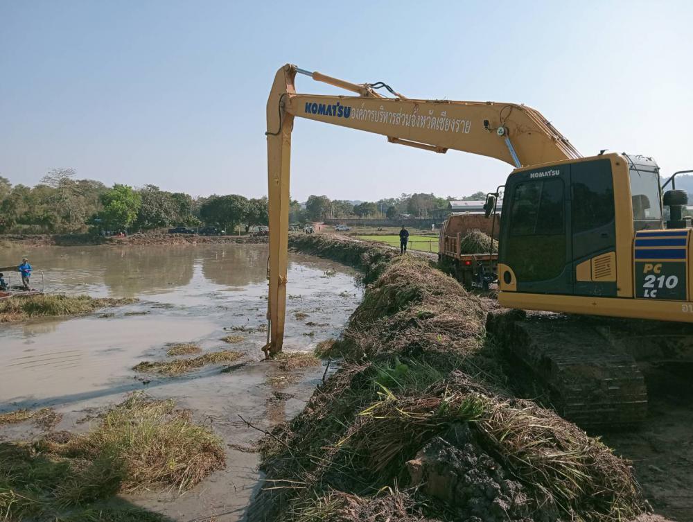 สำนักงานเทศบาลตำบลเมืองชุมและพี่น้องชาวบ้านใหม่เจริญ ทำการขุดลอกกำจัดวัชพืชหนองบอยป่าใคร้โดยได้รับการสนับสนุนเครื่องจักรกลหนักแม็คโครบูมยาว รถดั้ม จากองค์การบริหารส่วนจังหวัดเชียงรายเรือท้องแบนพร้อมอุปกรณ์ผลักดันวัชพืช และบุคลากรจาก มหาวิทยาลัยราชภัฏเชียงราย สำนักงานเทศบาลตำบลเมืองชุม เป็นฝ่ายสนับสนุนงบประมาณน้ำมันเชื้อเพลิงในการดำเนินงาน บ้านใหม่เจริญ มี นาง วาสนา จันทาพูน ดำรงตำแหน่ง ผญบ.มี 76 ครัวเรือนมีประชากร 225 คน แรงงานส่วนใหญ่เป็นแรงงานผู้สูงวัยและการใช้แรงงานคนภายในหมู่บ้านใหม่เจริญ ช่วยตัดแบ่งวัชพืชเพื่อให้ง่ายในการสะดวกในการใช้เรือผลักดันเข้าหาจุดรถตัก ใส่รถขนย้ายในขั้นตอนต่อไป