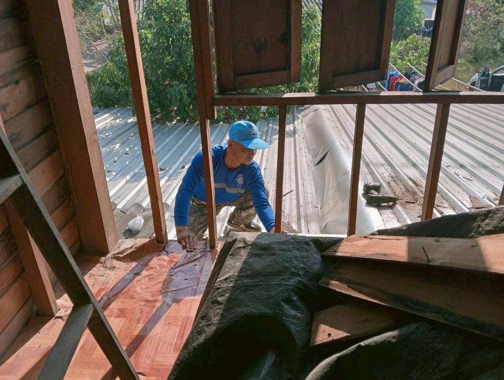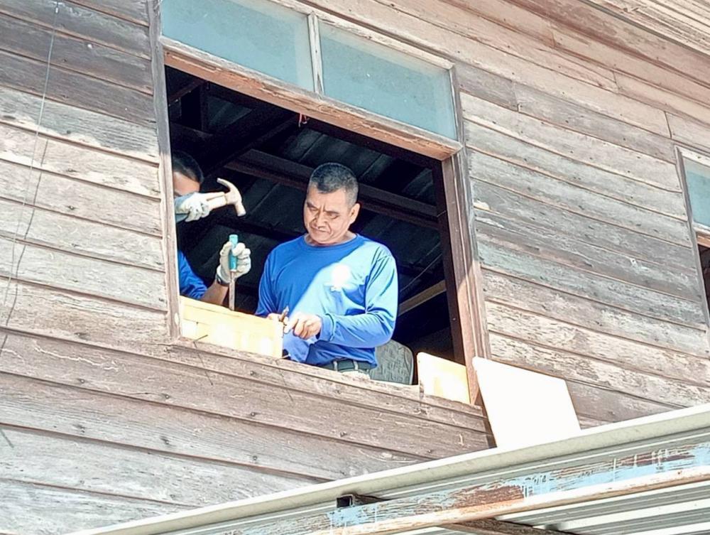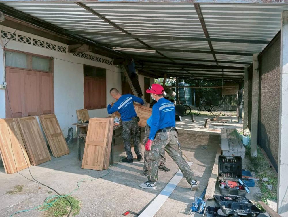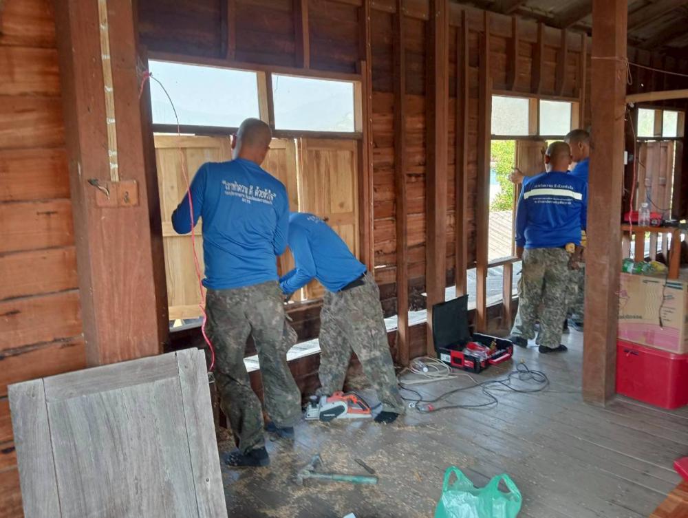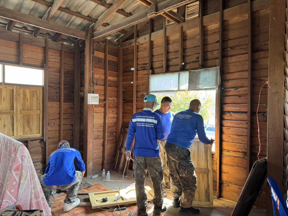 มอบหมายให้ รศ.ดร.นาวินพรมใจสา รองอธิการบดีฯจิตอาสา4A-393/ก จิตอาสา 904 ผอ.ศูนย์เฝ้าระวังและตอบโต้ภัยพิบัติเพื่อนพึ่ง(ภาฯ)ราชภัฏเชียงราย พร้อมด้วย อ.สุรเดช ต่างเพชร ผู้ช่วยอธิการบดีฯและ ผอ.ราชันย์ ทนันชัย ผอ.กองบริหารกายภาพสิ่งแวดล้อมและความปลอดภัย ผู้ควบคุมการก่อสร้างฯ นำกำลังพลจิตอาสาฯสังกัดมหาวิทยาลัยราชภัฏเชียงรายลงพื้นที่ปรับปรุงซ่อมแซมบ้านให้กับ นาง จันทร์พลอย นันตา อายุ 65 ปีครอบครัวมีสมาชิกจำนวน 5 คนประกอบด้วย ผู้สูงวัย เยาวชนฯประกอบอาชีพได้มีเพียงคนเดียว บ้านหลังดังกล่าวเป็นบ้านไม้โบราญ ชั้นล่างก่ออิฐพื้นปูน ก่อสร้างมาแล้วมากกว่า 50 ปีจึงทำให้ตัวบ้านชั้นบนผุพังตามกาลเวลา มีน้ำซึมรั่วอย่างมากในเวลาฝนตก อาศัยอยู่ด้วยความลำบากในการดำเนินชีวิต