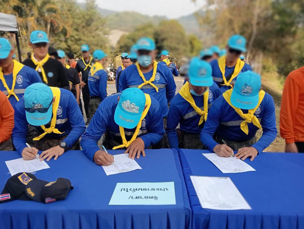 หลังจากทำพิธีเปิดโครงการฯ ผู้เข้าร่วมโครงการมากกว่า 250 คนได้เข้าร่วมทำแนวกันไฟ ในพื้นที่ป่าอุทยานน้ำตกโป่งพระบาท ม. 13ต.บ้านดู่ฯ