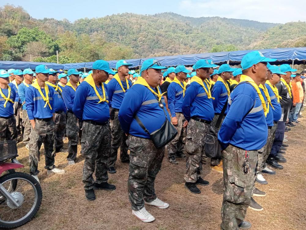 รศ.ดร. ไพโรจน์ ด้วงนคร อธิการบดีมหาวิทยาลัยราชภัฏเชียงรายพร้อมคณะกรรมการส่งเสริมกิจการมหาวิทยาลัยมูลนิธิเพื่อนพึ่ง(ภาฯ)ยามยากสภากาชาดไทย มอบหมายให้ รศ.ดร.นาวิน พรมใจสา รองอธิการบดีฯจิตอาสา 4A-393/ก จิตอาสา 904 ผอ.ศูนย์เฝ้าระวังและตอบโต้ภัยพิบัติเพื่อนพึ่ง(ภาฯ)ราชภัฏเชียงรายและ ผอ.ราชันย์ ทนันชัย ผอ.กองบริหารกายภาพสิ่งแวดล้อมและความปลอดภัยฯนำกำลังพลจิตอาสาสังกัดมหาวิทยาลัยราชภัฏเชียงราย เข้าร่วมโครงการฯดังกล่าว โดยมี นายประยงค์ ศิริวัฒน์ ปลัด อ.เมือง ชร.ให้เกียรติฯเดินทางมาเป็นประธานเปิดโครงการฯ มีนาย ศรีเนตร ธนาคำนายกเทศมนตรีเทศบาลตำบลบ้านดู่ กล่าวรายงาน โครงการฯอีกทั้งประกอบด้วยผู้นำชุมชนทุกหมู่บ้านฯ กลุ่มพลังต่างๆ จิตอาสาฯประจำหมู่บ้าน อปพร. กลุ่มพลังป้องกันไฟป่า นำโดยกำนัน วินัย ธุวคำ กำนันตำบลบ้านดู่และผู้ใหญ่บ้านทุกหมู่บ้านฯ