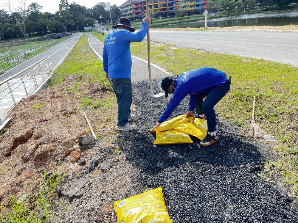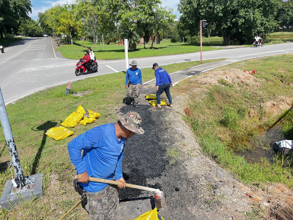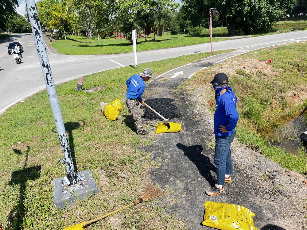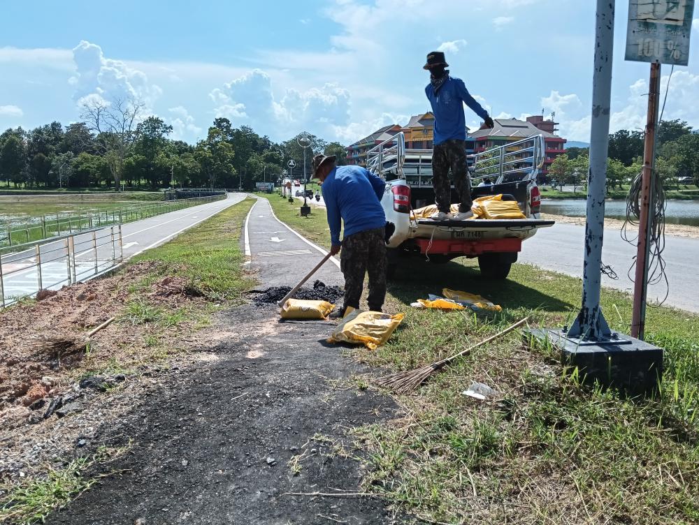 กองบริหารกายภาพฯ ซ่อมถนนทางเดินออกกำลังกายหนองบัวหน้าหอปรัชญา