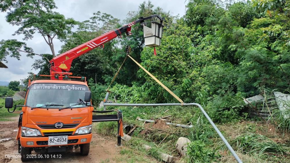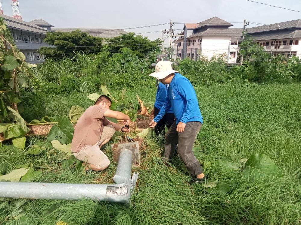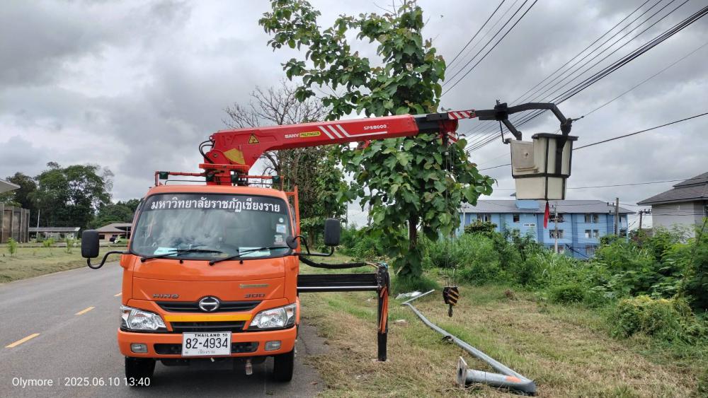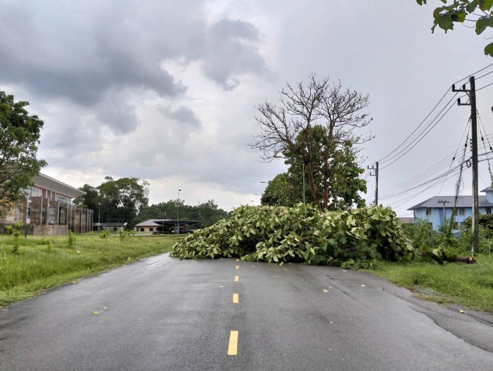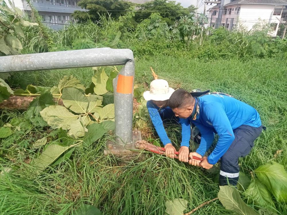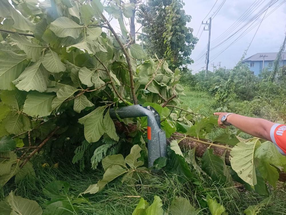 รื้อถอนเสาไฟกิ่งเนื่องจากต้นไม้ล้มทับข้างอาคารบริหทรงานกลาง