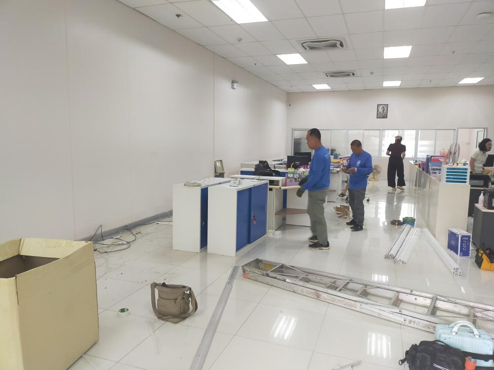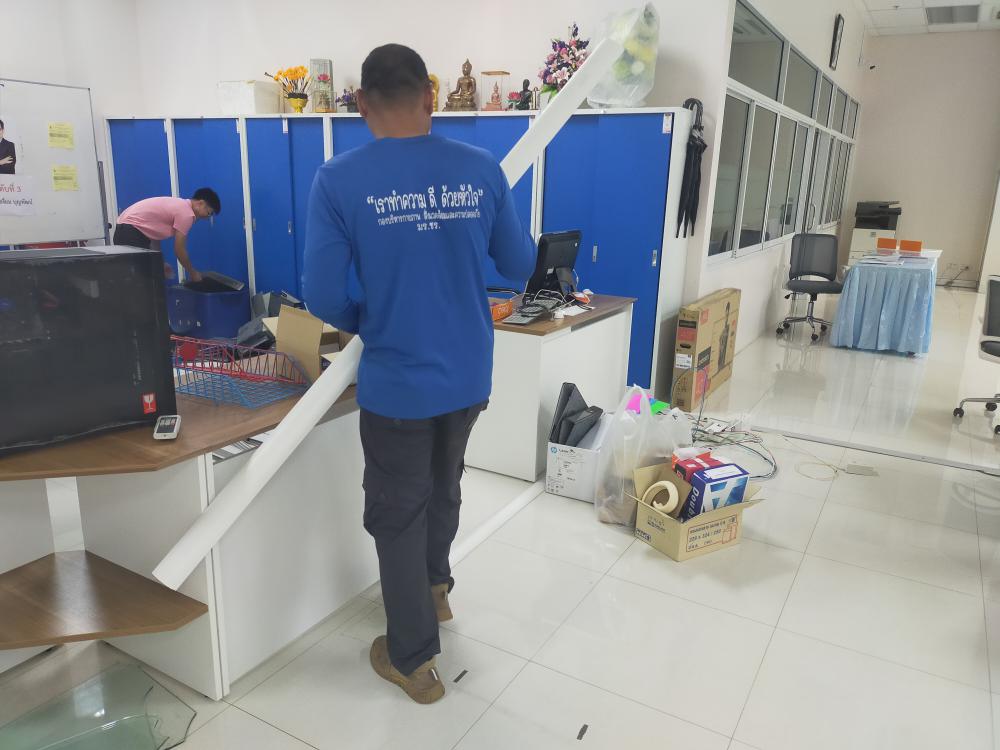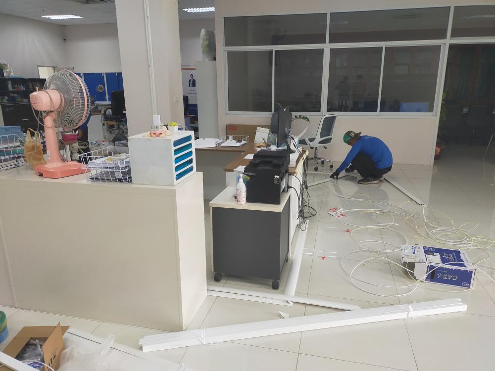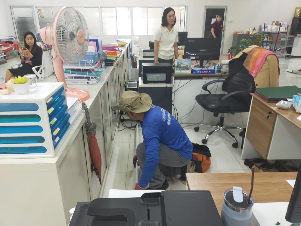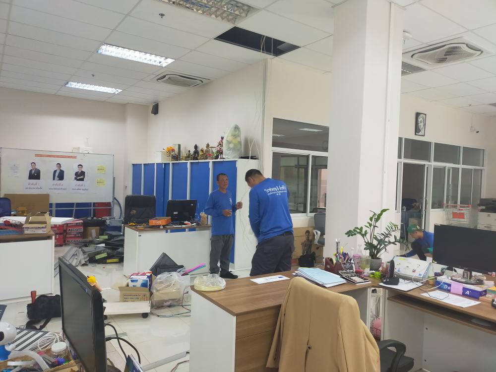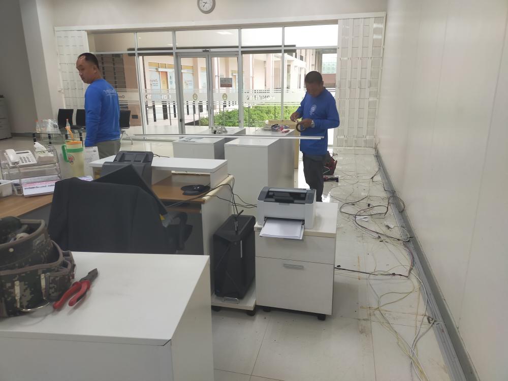 กองบริหารกายภาพฯ ติดตั้งระบบไฟฟ้า ระบบเครือข่ายและระบบโทรศัพท์ ภายในห้องกองกลาง เนื่องจากปรับปรุงห้องสำนักงาน