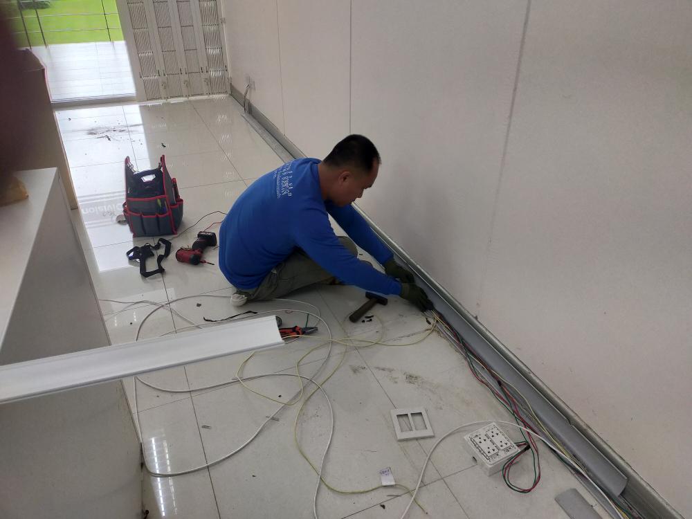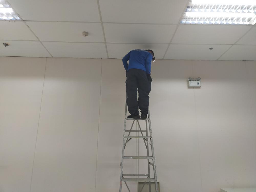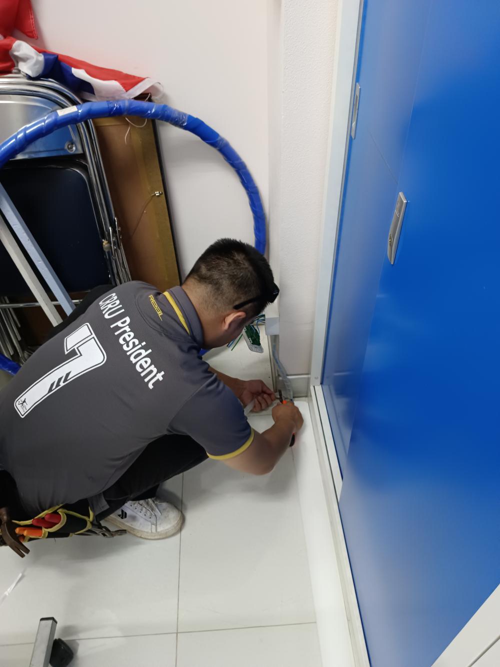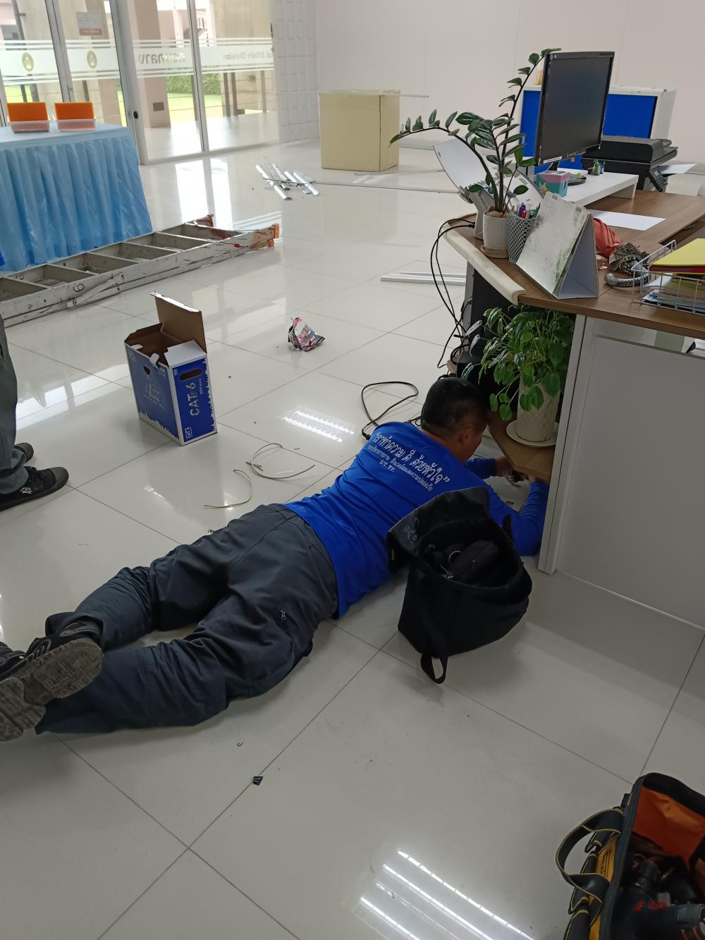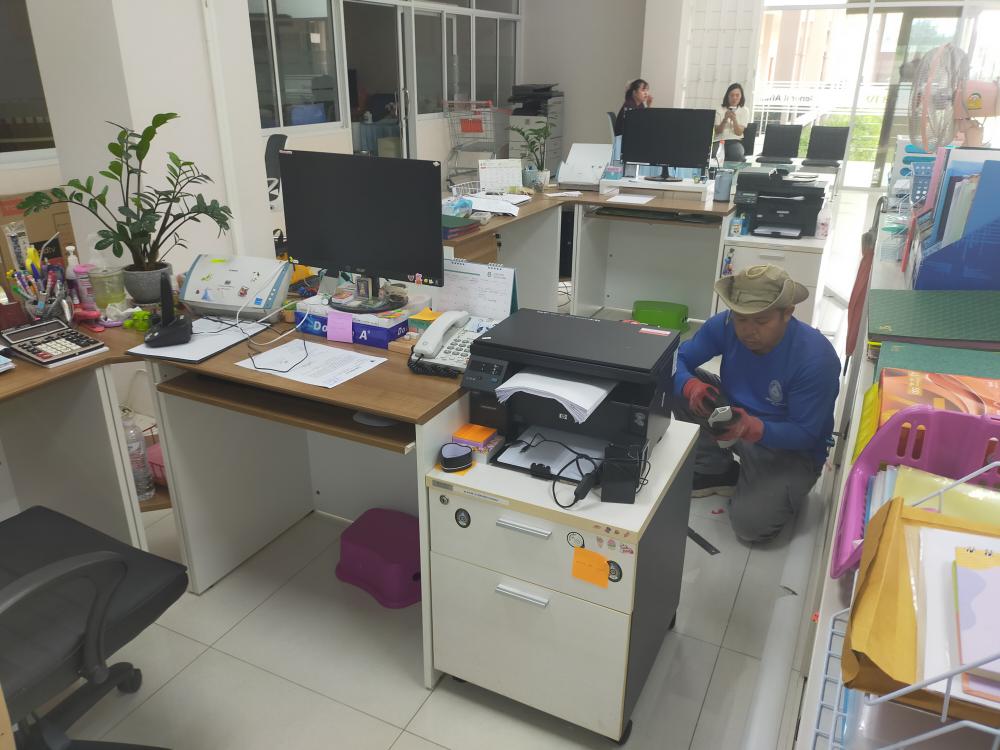 กองบริหารกายภาพฯ ติดตั้งระบบไฟฟ้า ระบบเครือข่ายและระบบโทรศัพท์ ภายในห้องกองกลาง เนื่องจากปรับปรุงห้องสำนักงาน