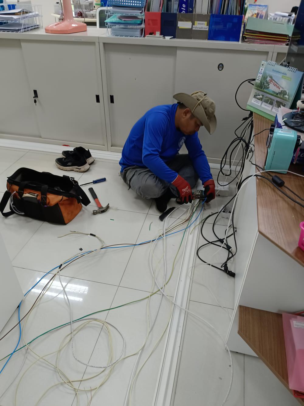 ติดตั้งระบบไฟฟ้า ระบบเครือข่ายและระบบโทรศัพท์ ภายในห้องกองกลาง