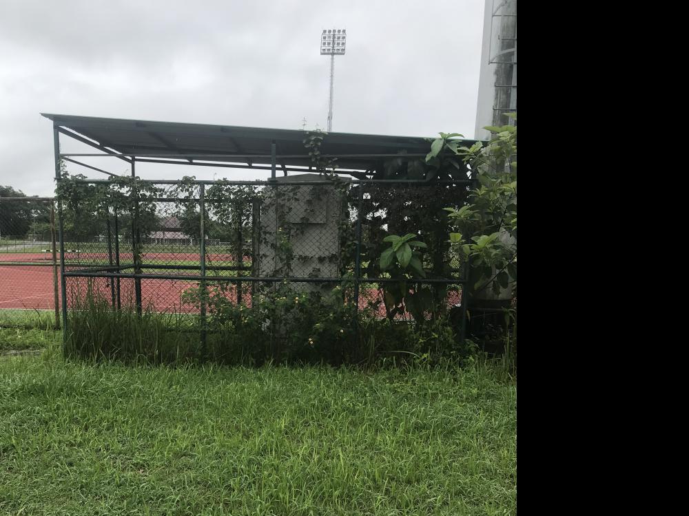 กำจัดวัชพืชบริเวณตู้ไฟสนามและหม้อแปลงสนามกีฬาสปอร์ตคอมเพล็ก