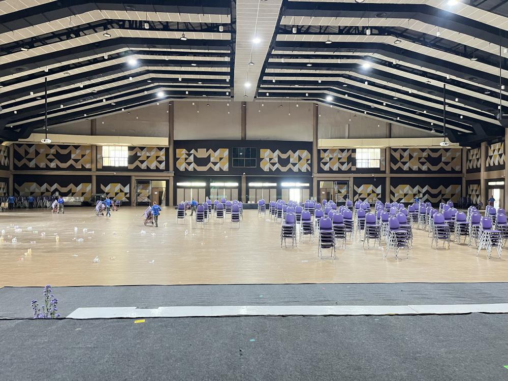 กองพัฒนานักศึกษา จัดสถานที่งานเปิดโลกกิจกรรมและ Freshy CRRU 2025 ณ หอประชุมใหญ่ วันที่ 27 ส.ค. 2568