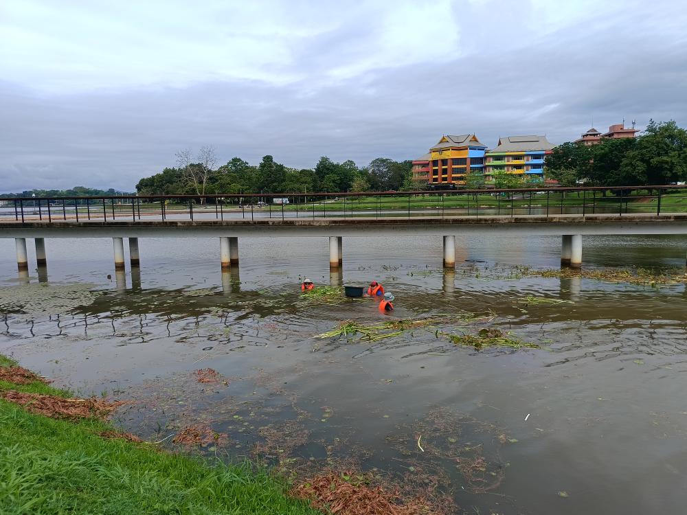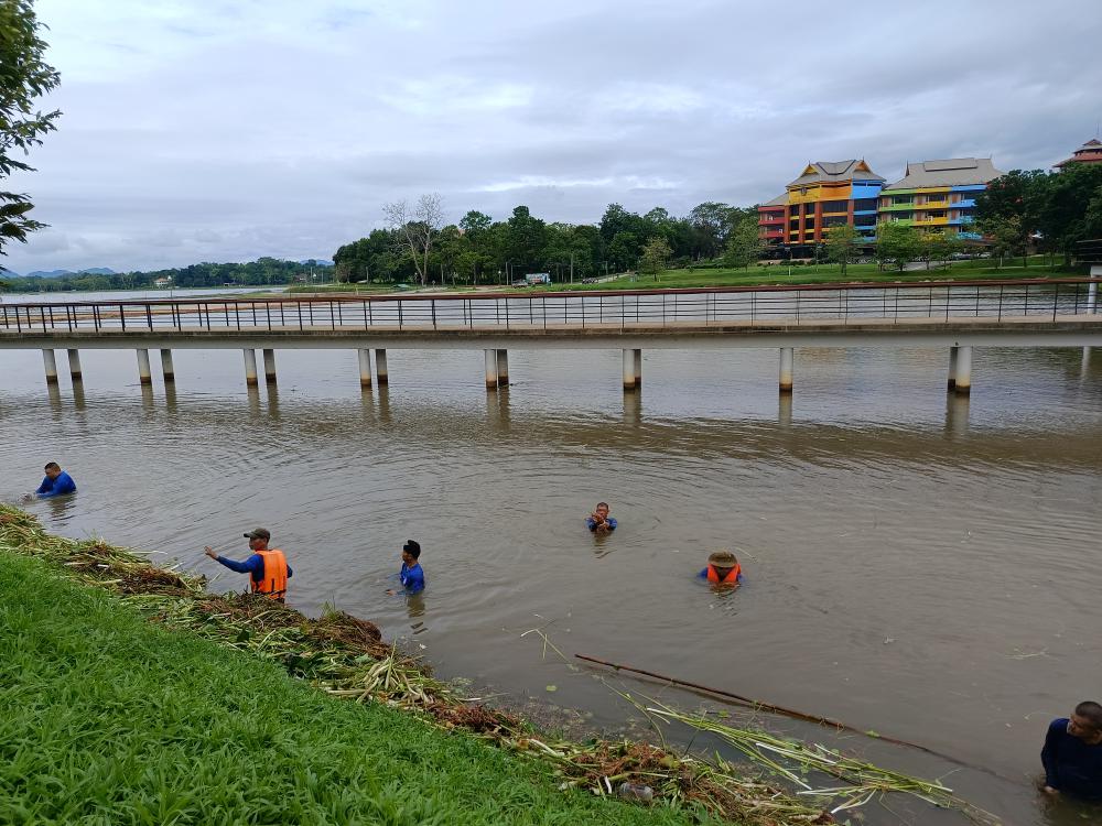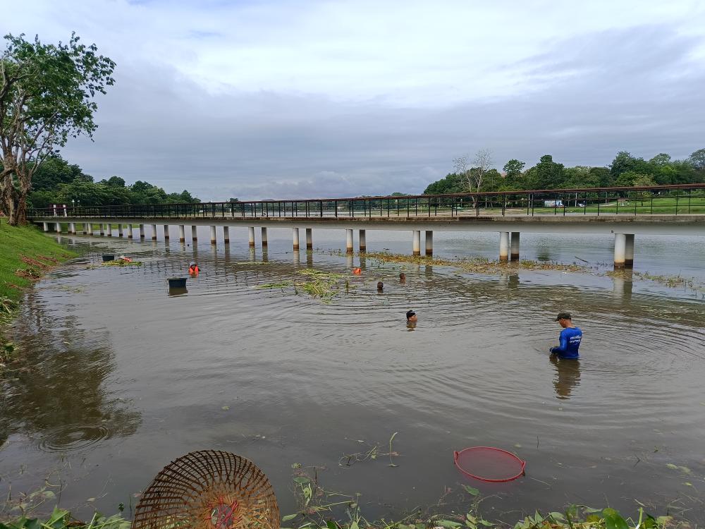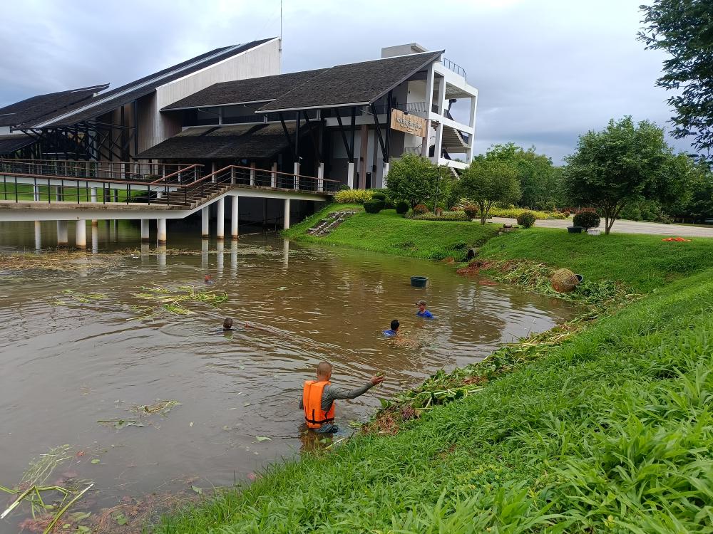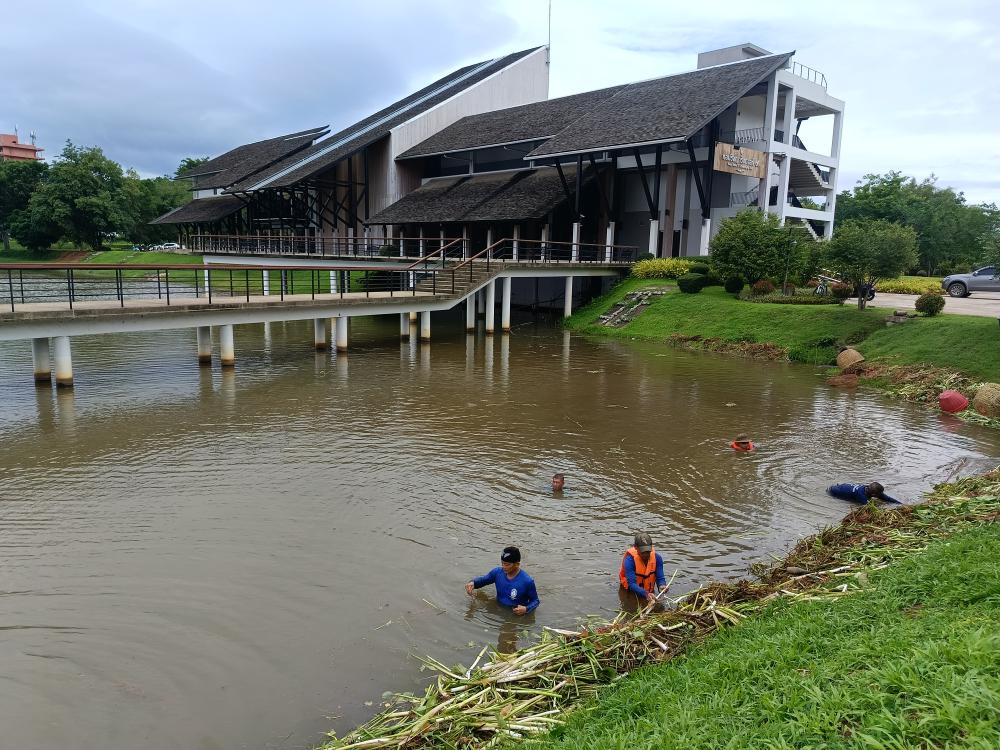 ถอนวัชพืชสระน้ำหน้าหอปรัชญาร 9