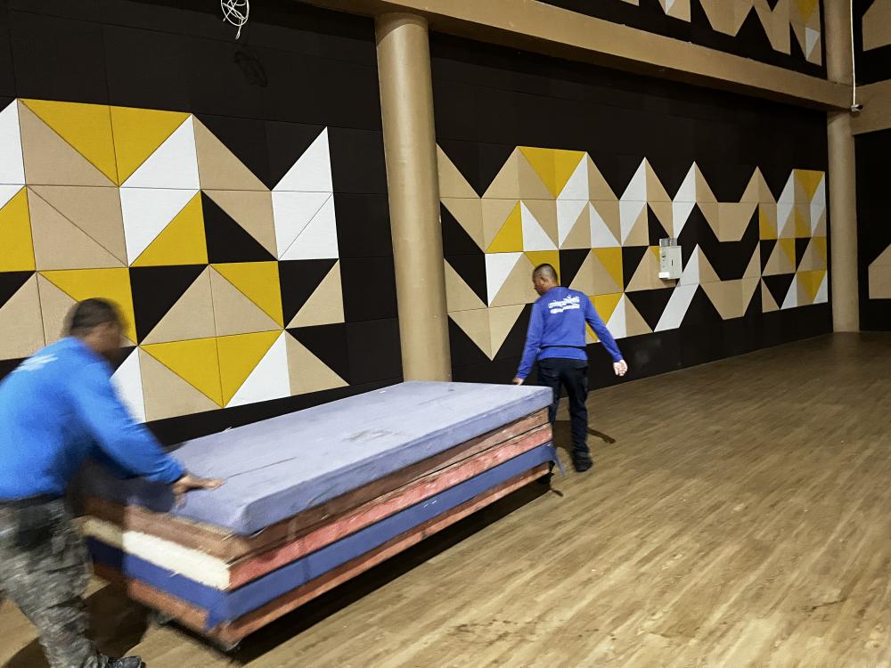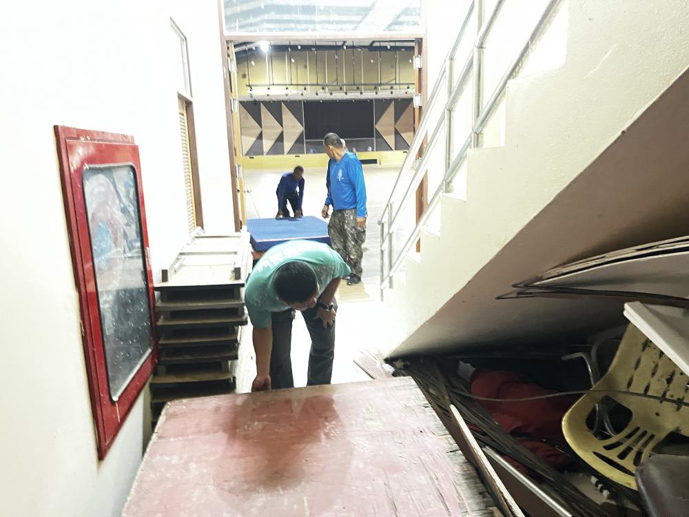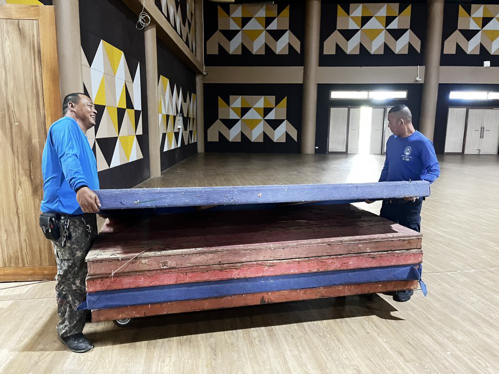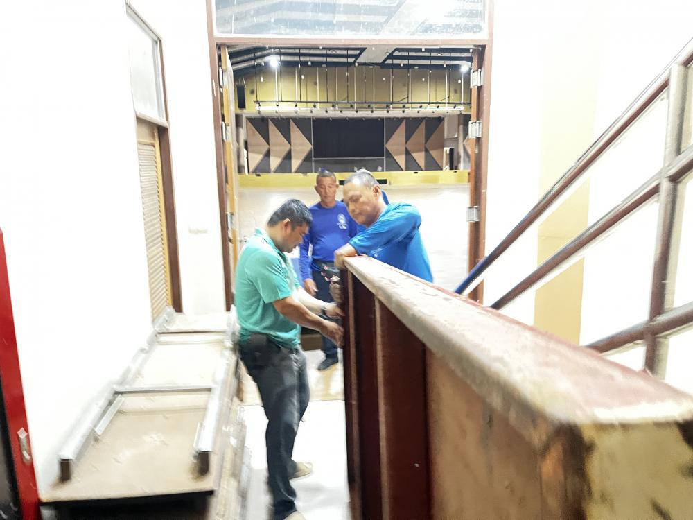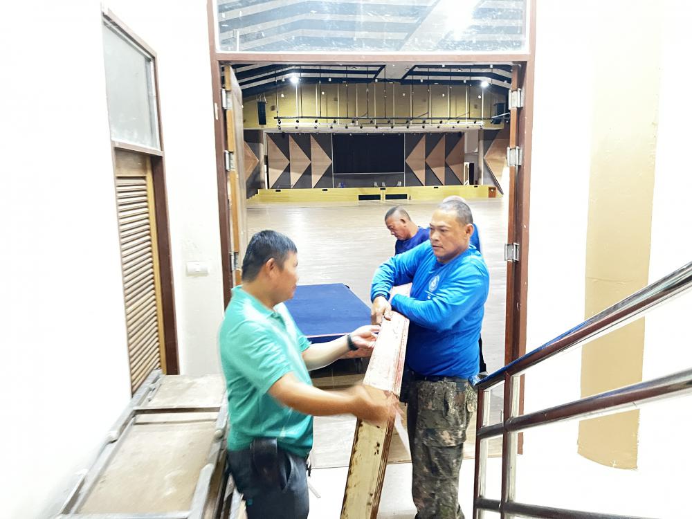 ขนย้ายแผ่นพื้นเวทีหอประชุมใหญ่
