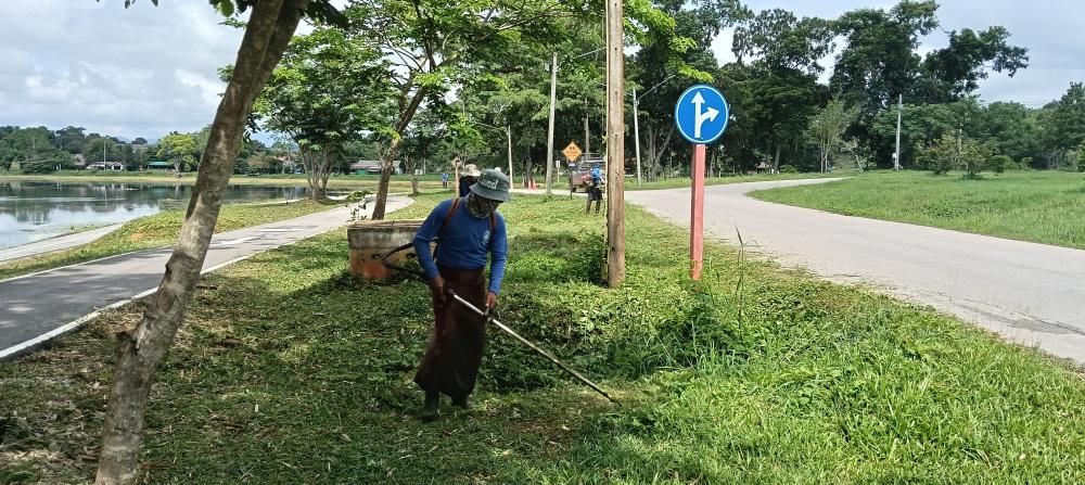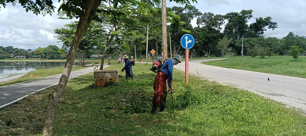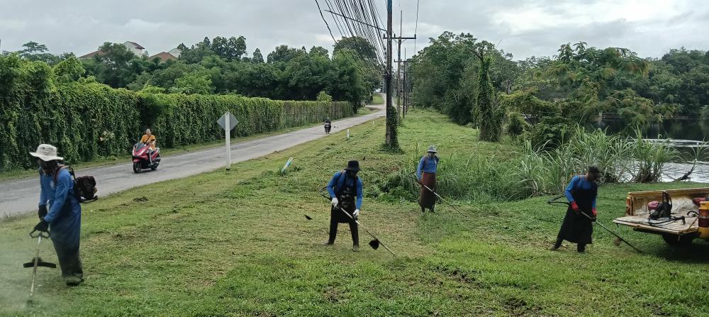 ตัดหญ้าริมถนนหน้ากองบริหารกายภาพและประตู 3