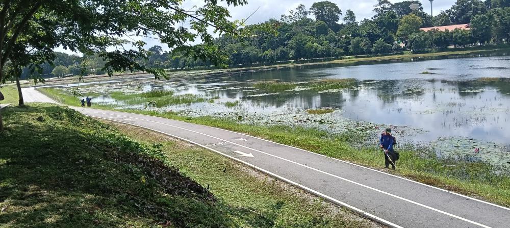 กองบริหารกายภาพฯ ตัดหญ้าริมถนนหน้ากองบริหารกายภาพและประตู 3