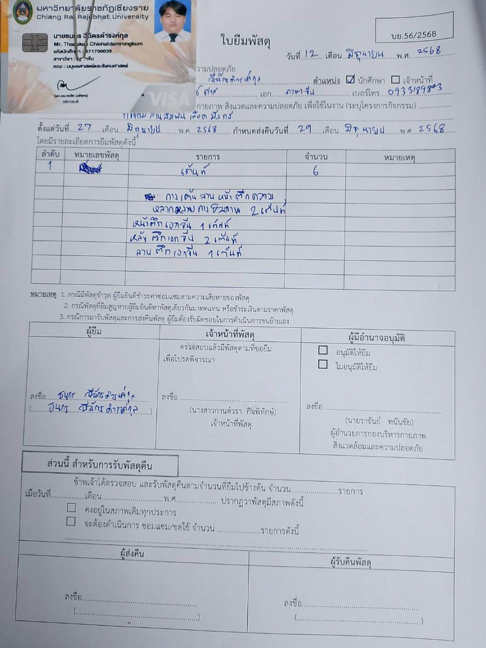 คณะมนุษยศาสตร์ฯ ขนย้ายเต้นท์ จำนวน 6 หลัง ตามจุดต่างๆ ที่ระบุในเอกสาร **ขอใช้งานวนวันที่ 27-29 มิ.ย. 2568**