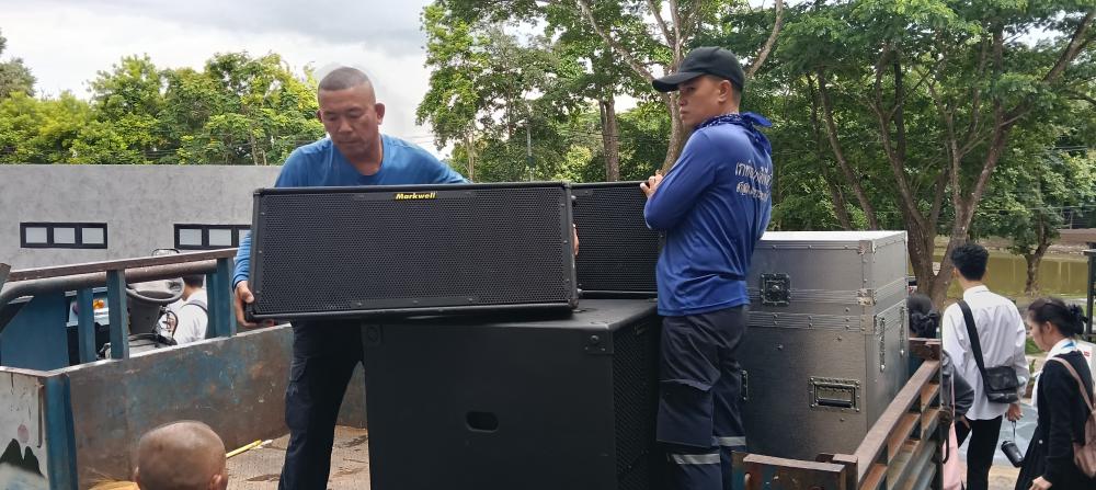 คณะการท่องเที่ยวฯ ขนย้ายชุดลำโพงและเครื่องเสียง จากหอประชุมกาสะลองคำ ไป คณะการท่องเที่ยวฯ