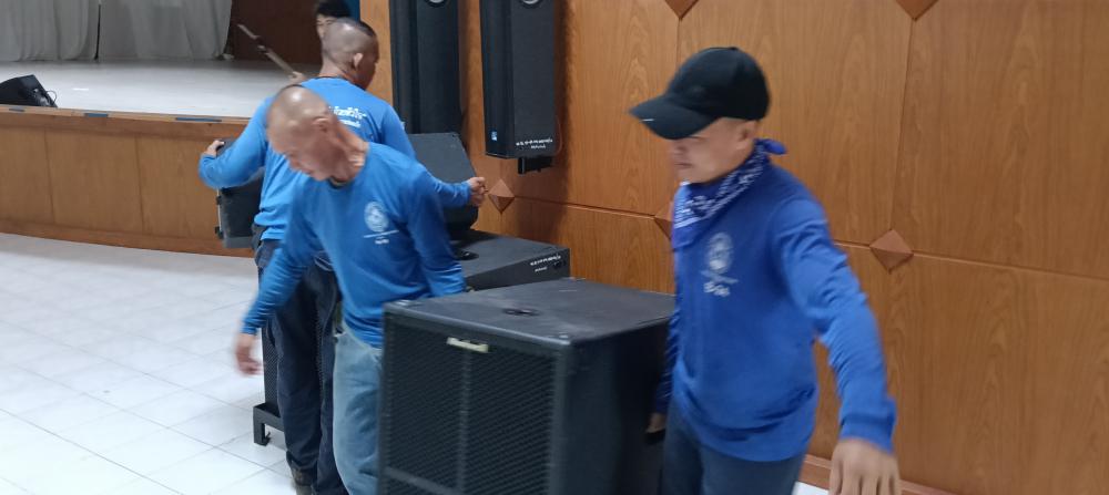 ขนย้ายชุดลำโพงและเครื่องเสียง จากหอประชุมกาสะลองคำ ไป คณะการท่องเที่ยวฯ