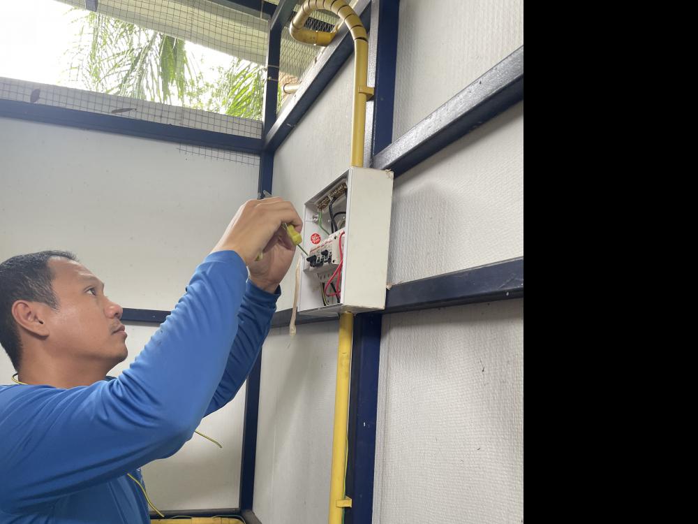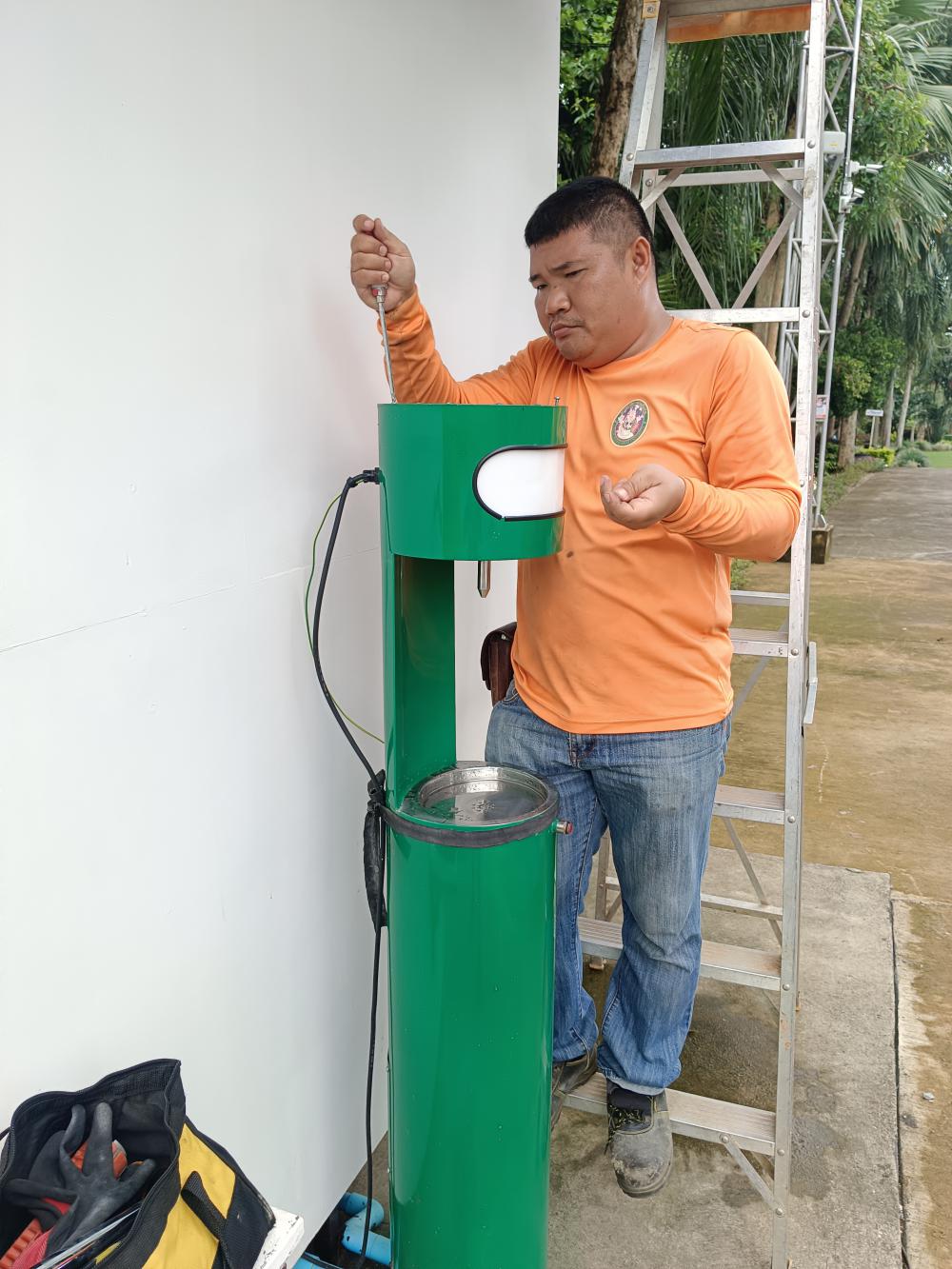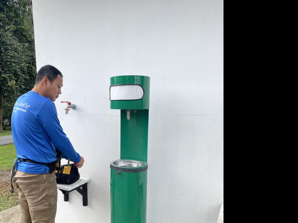 กองบริหารกายภาพฯ ตรวจสอบซ่อม ตู้กดน้ำดึ่มสวนสมเด็จฯเนื่องจากได้รับแจ้งมีไฟฟ้ารั่ว
