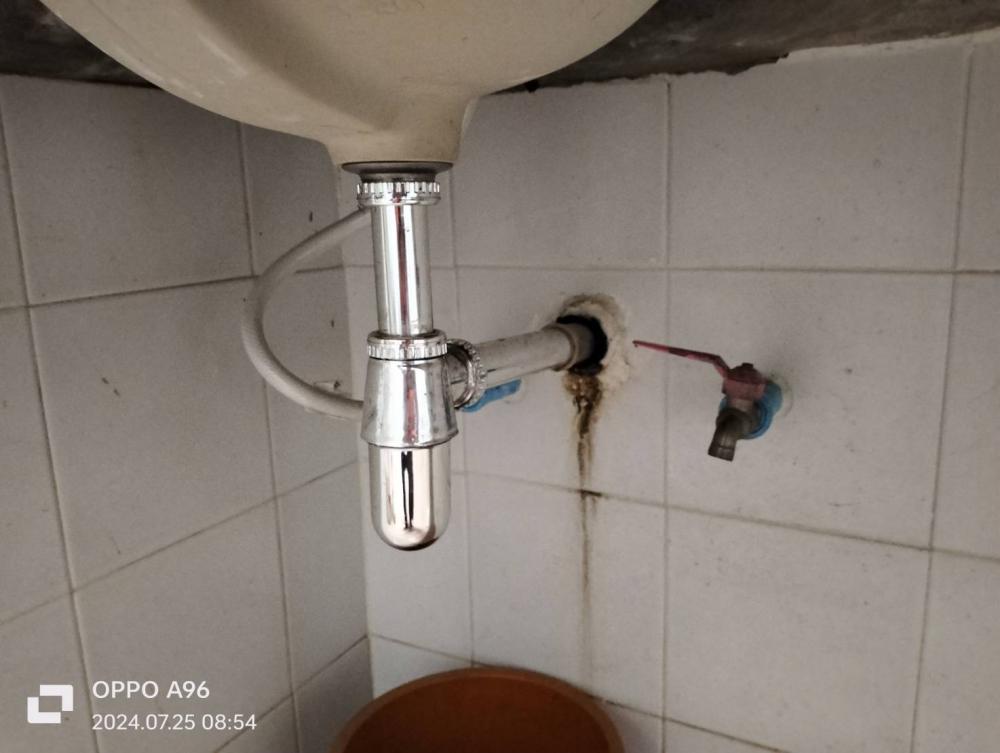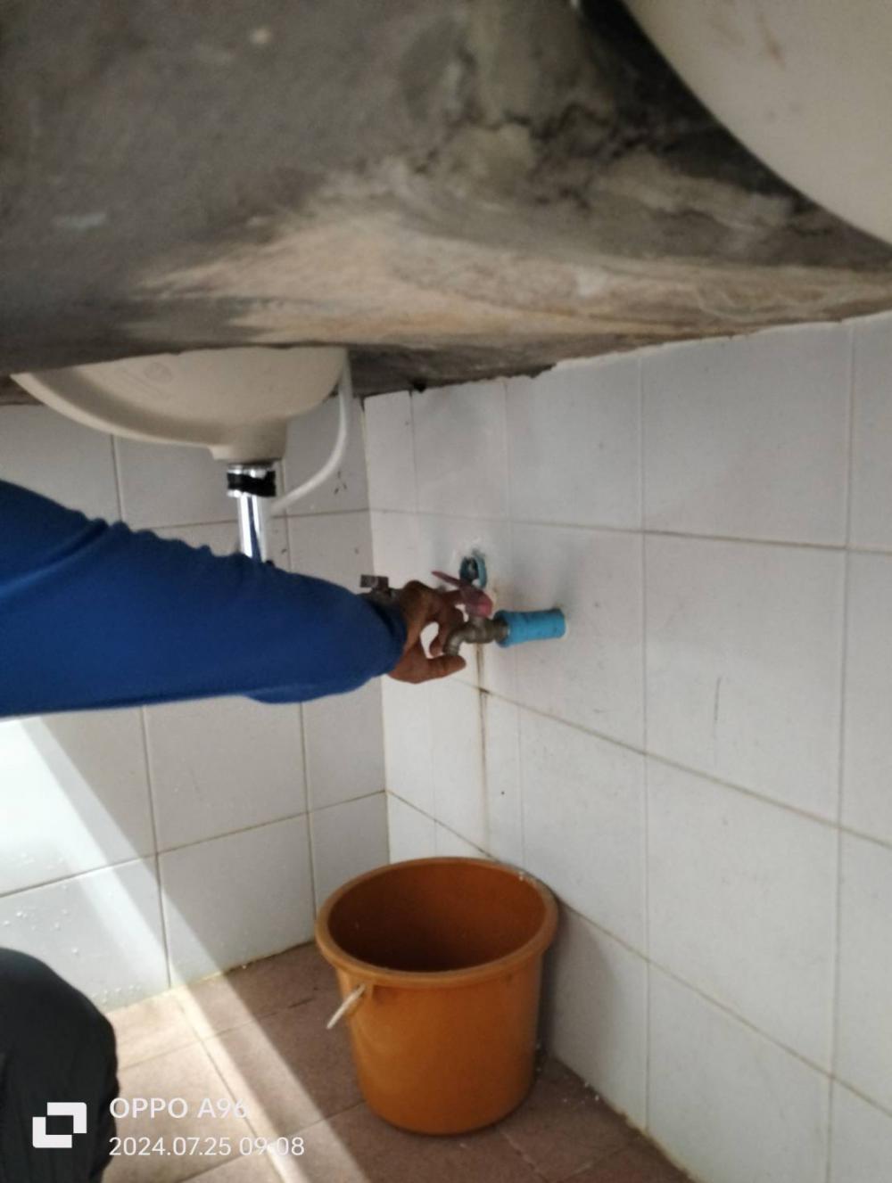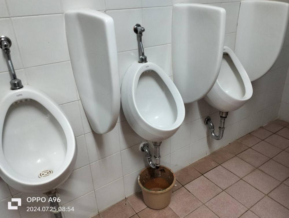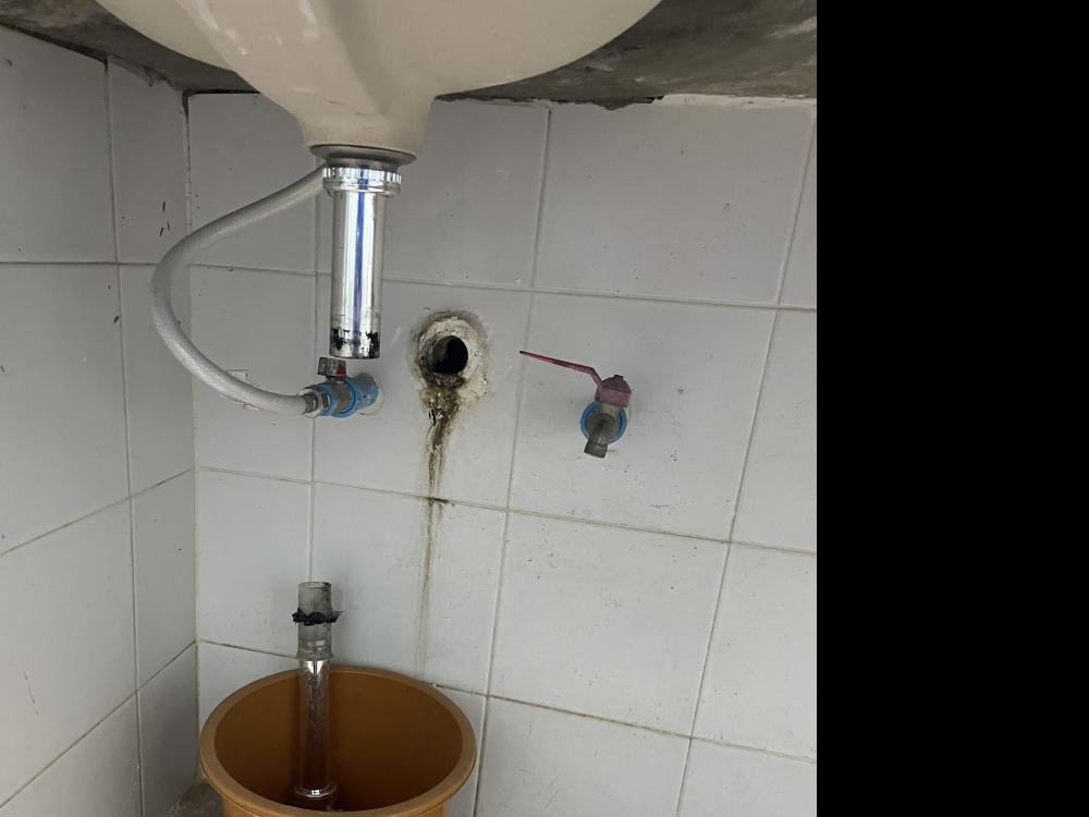 สถาบันภาษาฯ แจ้งซ่อมอ่างล้างหน้าและโถฉี่ พบว่ามีรอยรั่ว