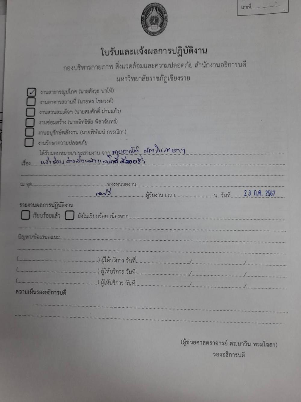 ตรวจสอบและซ่อมแซมห้องน้ำ ชั้น 1 อาคารสถาบันภาษาฯ
