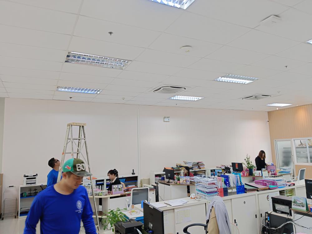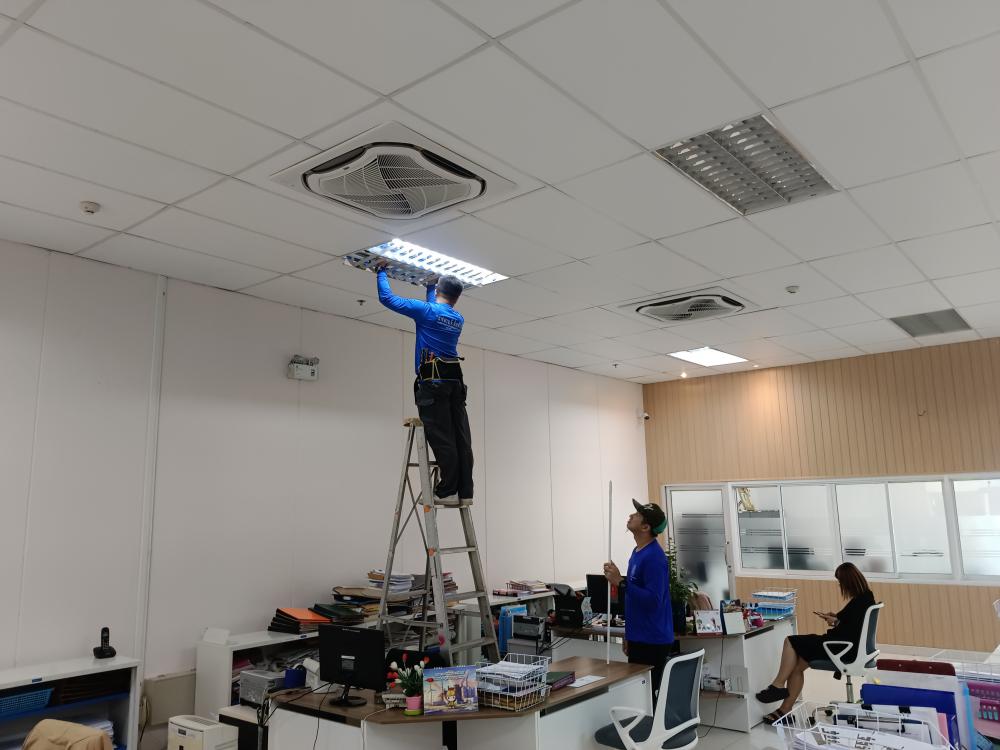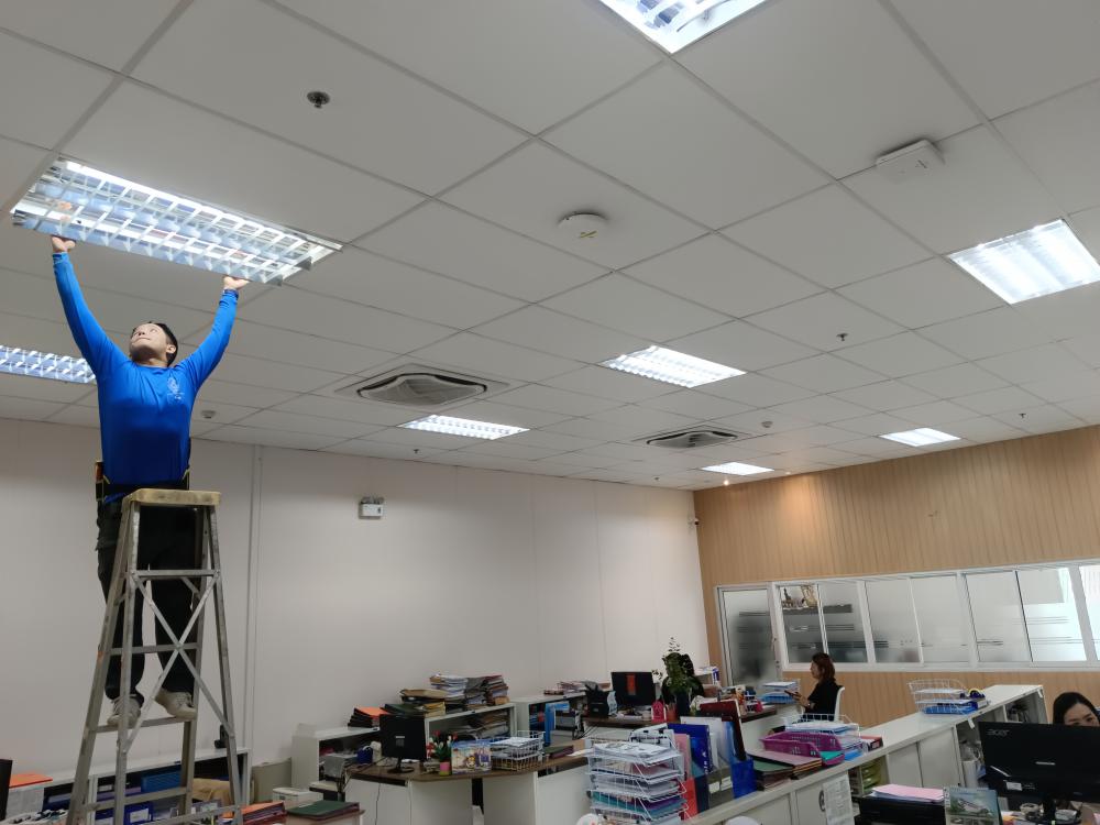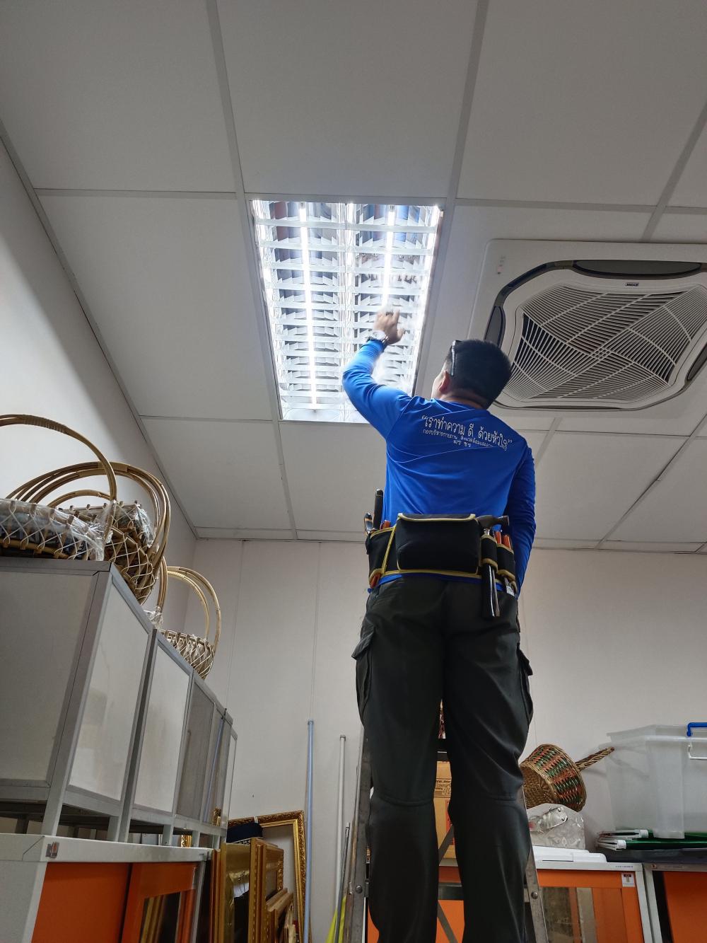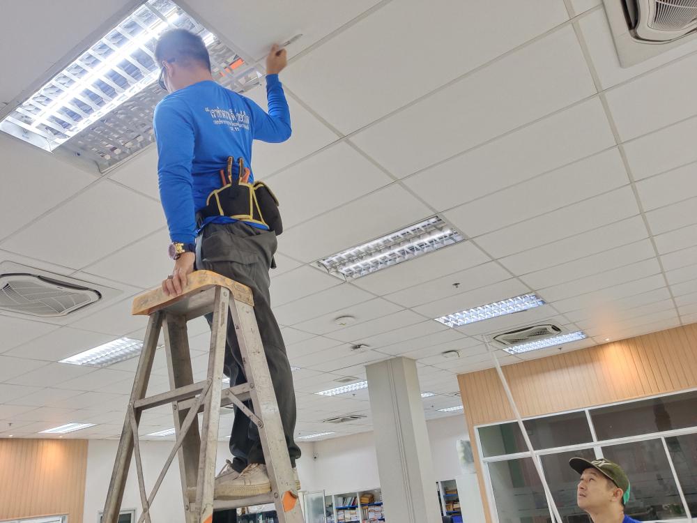 เปลี่ยนหลอดไฟห้องกองกลาง ตึกสำนักงานอธิการบดี