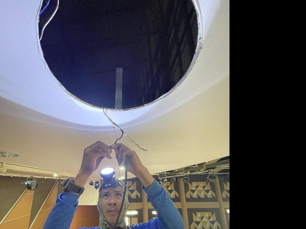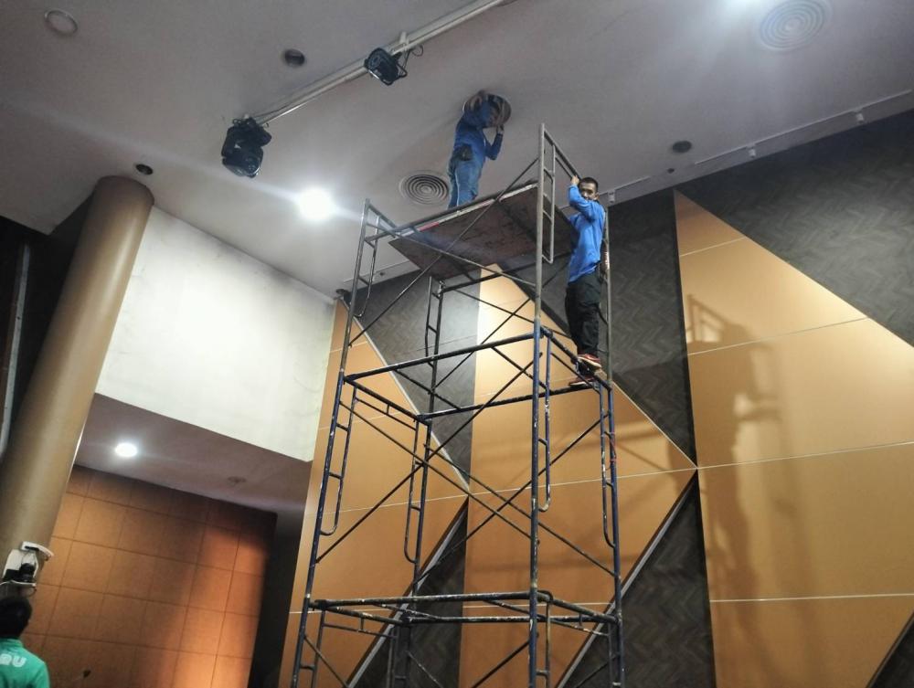 ซ่อมเปลี่ยนโคมไฟเวทีหอประชุมใหญ่