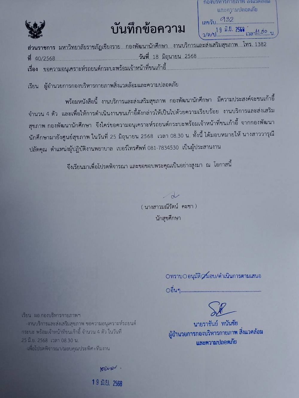 รับแจ้ง: 20 มิถุนายน 2568