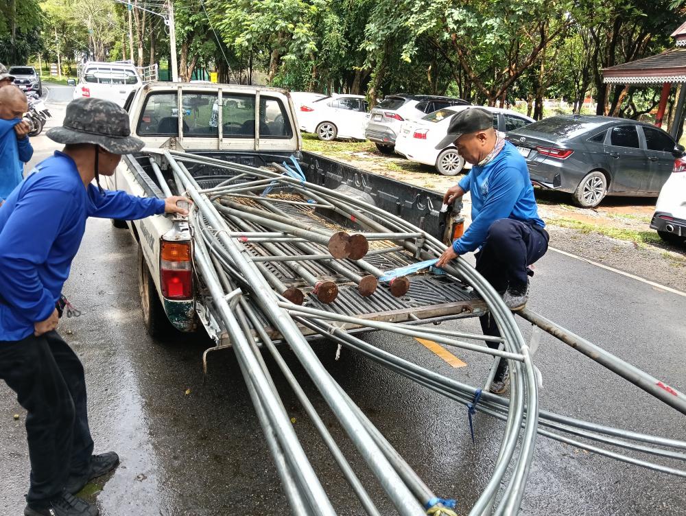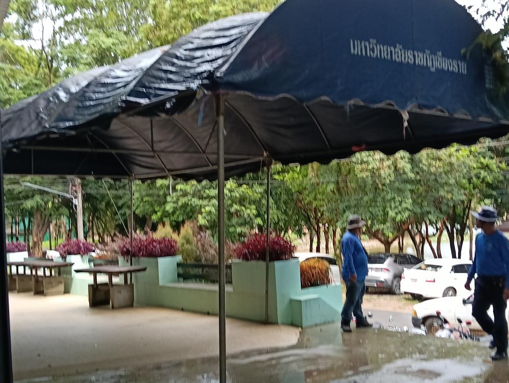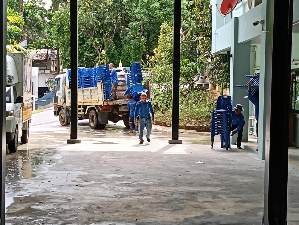 เก็บเต็นท์ เก้าอี้หน้าตึกท่องเที่ยว