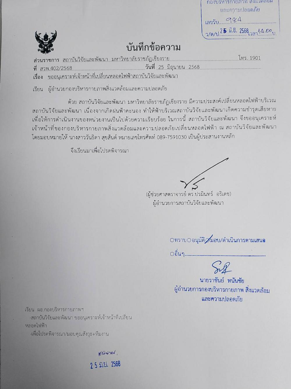 สถาบันวิจัยและพัฒนา รับแจ้งว่าไฟฟ้ามาไม่ครบเฟส **ทีม IT และ CCTV ทำการปิดอุปกรณ์ไว้แล้ว ลดความเสี่ยงอุปกรณ์พังเสียหาย**