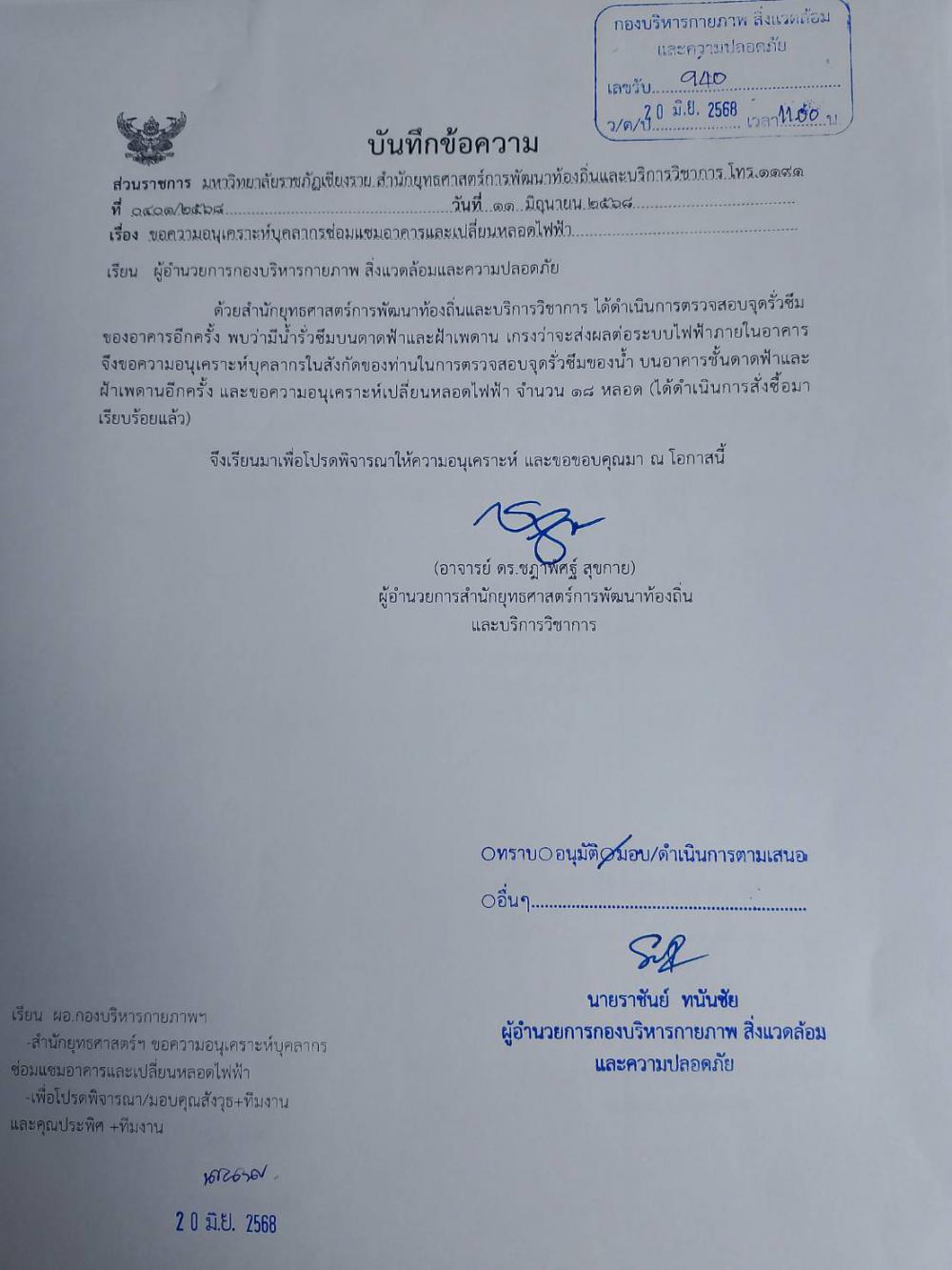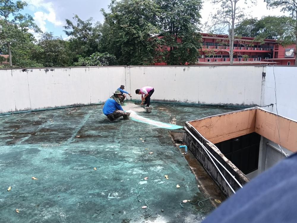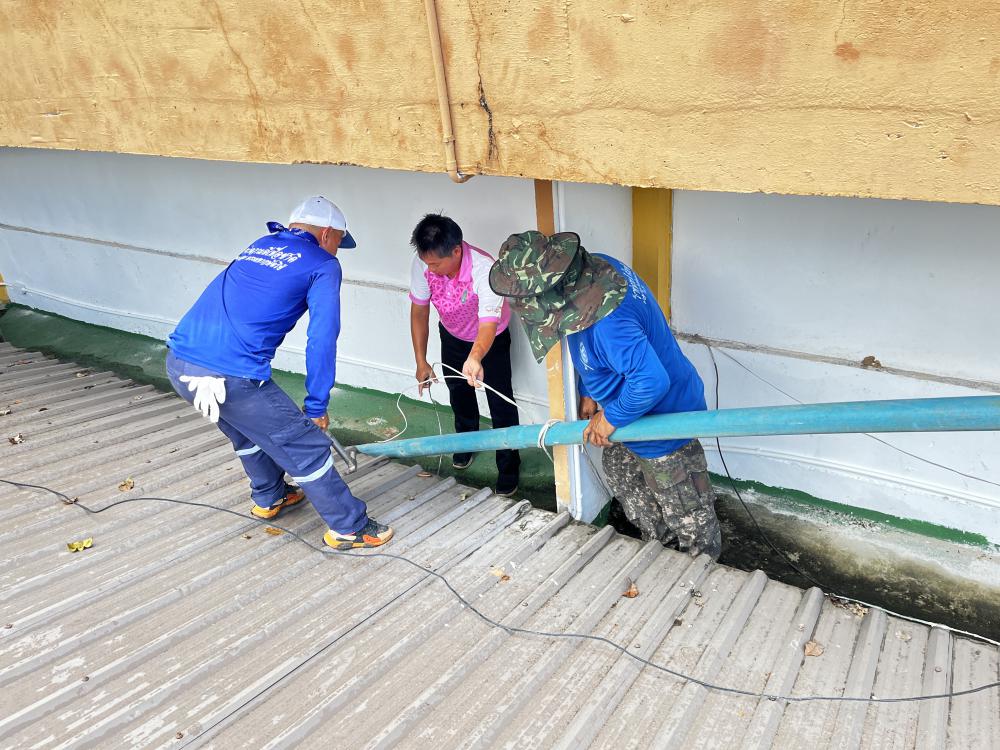 ตรวจสอบจุดรั่วซึมของหลังคาอาคารสำนักยุทธศาสตร์ฯ