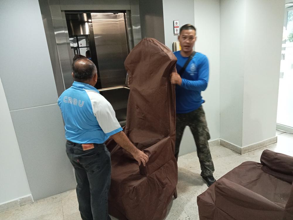 ขนย้ายขนเก้าอี้ผู้พิพากษา จำนวน 3 ตัว คอกพยาน จำนวน 1 ตัว ที่ ศาลแขวงเชียงราย