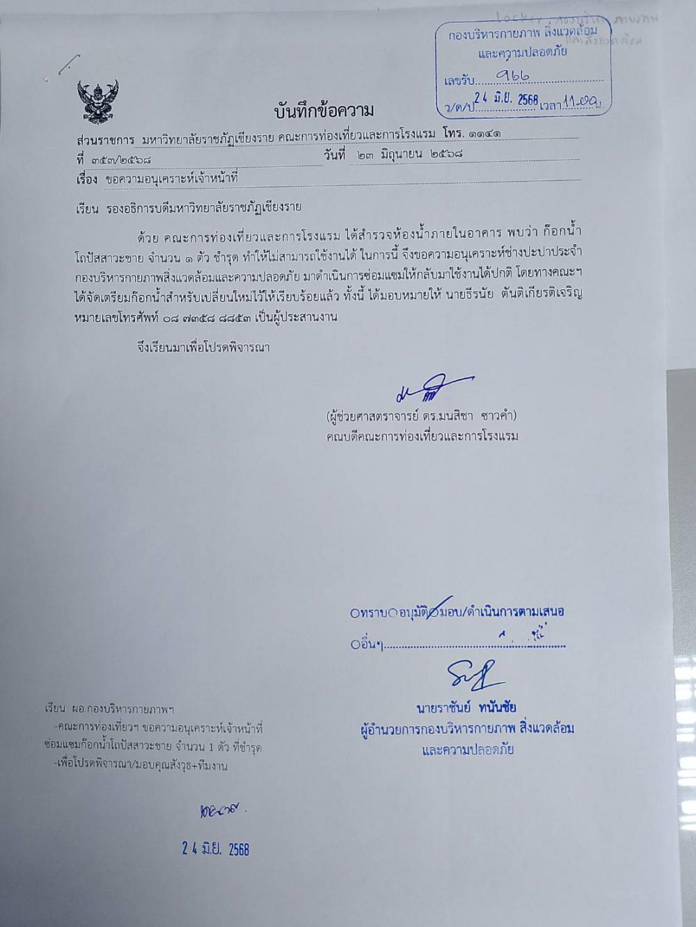 คณะการท่องเที่ยวฯ ซ่อมแซมก๊อกน้ำโถปัสสาวะชาย จำนวน 1 ตัว ที่ชำรุด