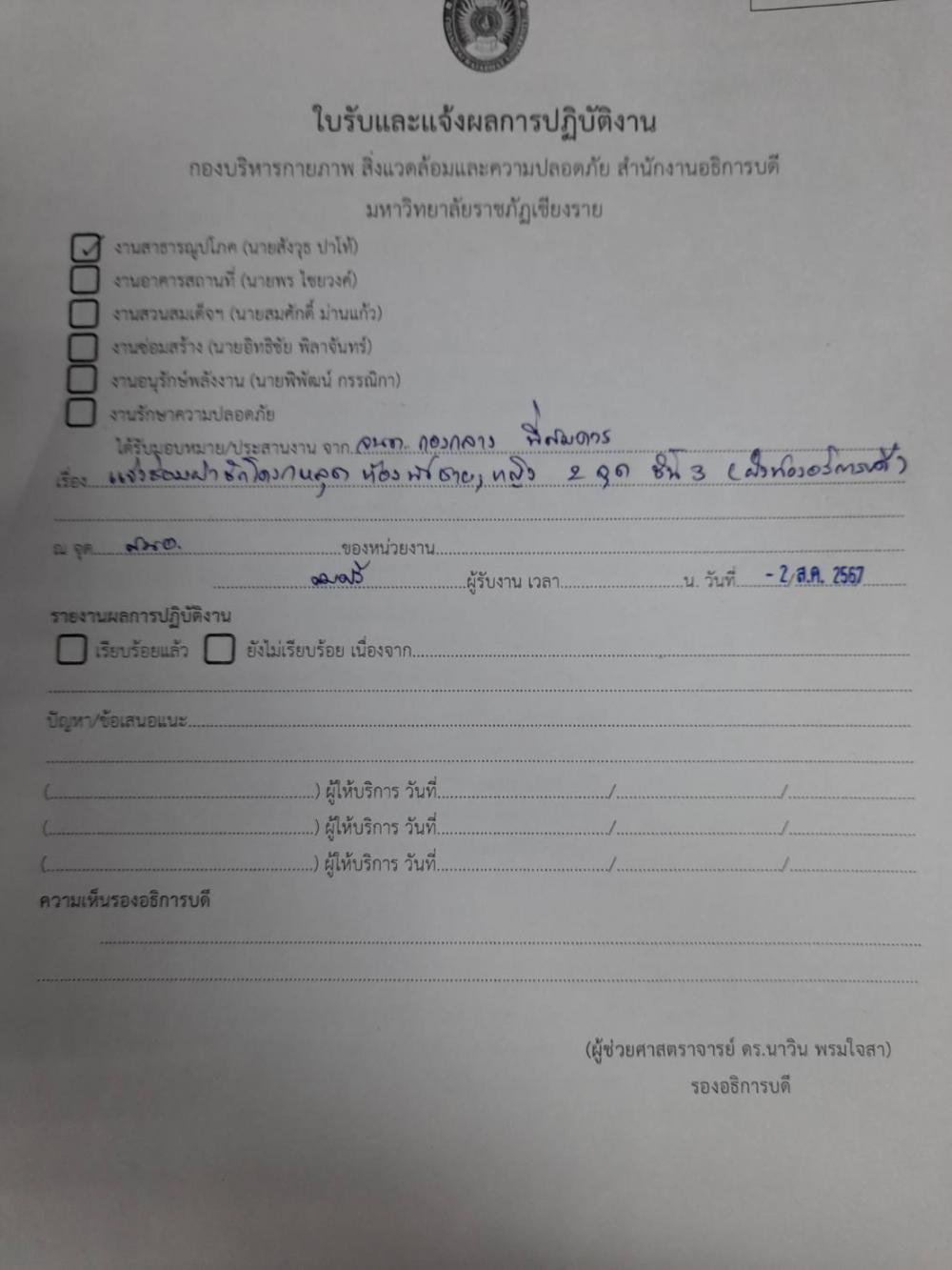 ตรวจสอบและซ่อมแซม ห้องน้ำชั้น 3 สำนักงานอธิการบดี จำนวน 2 จุด