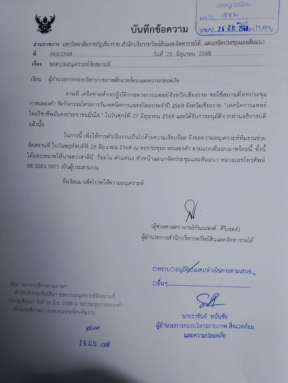 สำนักบริหารทรัพย์สินฯ จัดสถานที่งานวันเทคนิคการแพทย์ไทยประจำปี 2568