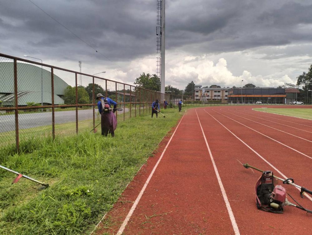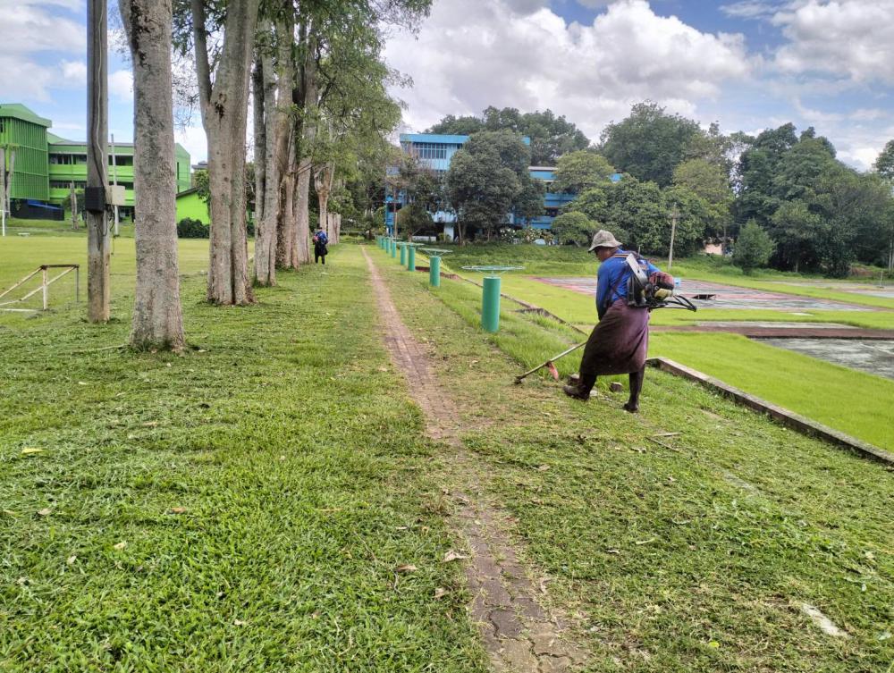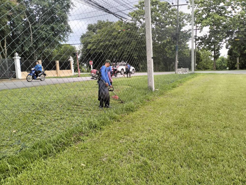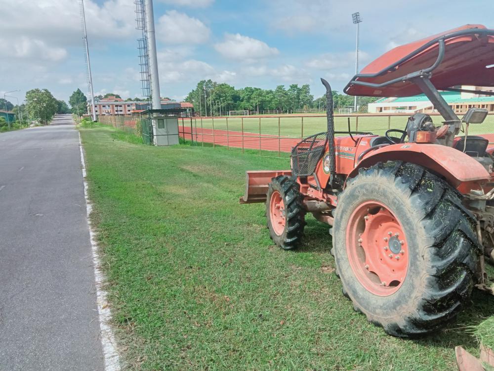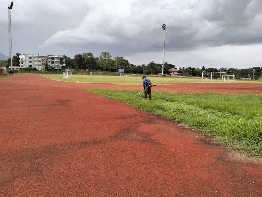กองบริหารกายภาพฯ ตัดหญ้าโซนสระว่ายน้ำ โรงยิมและด้านนอกสนามฟุตบอล หลังศูนย์สุขภาพ