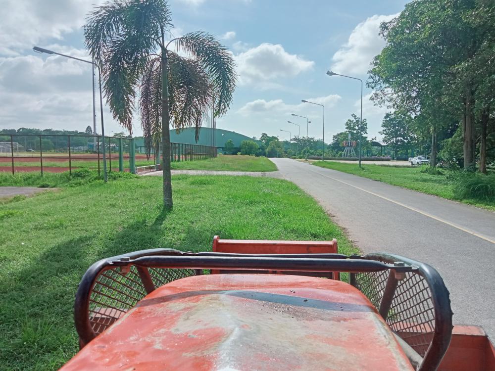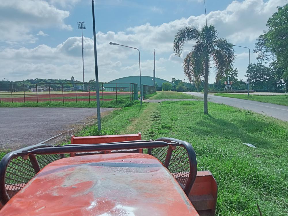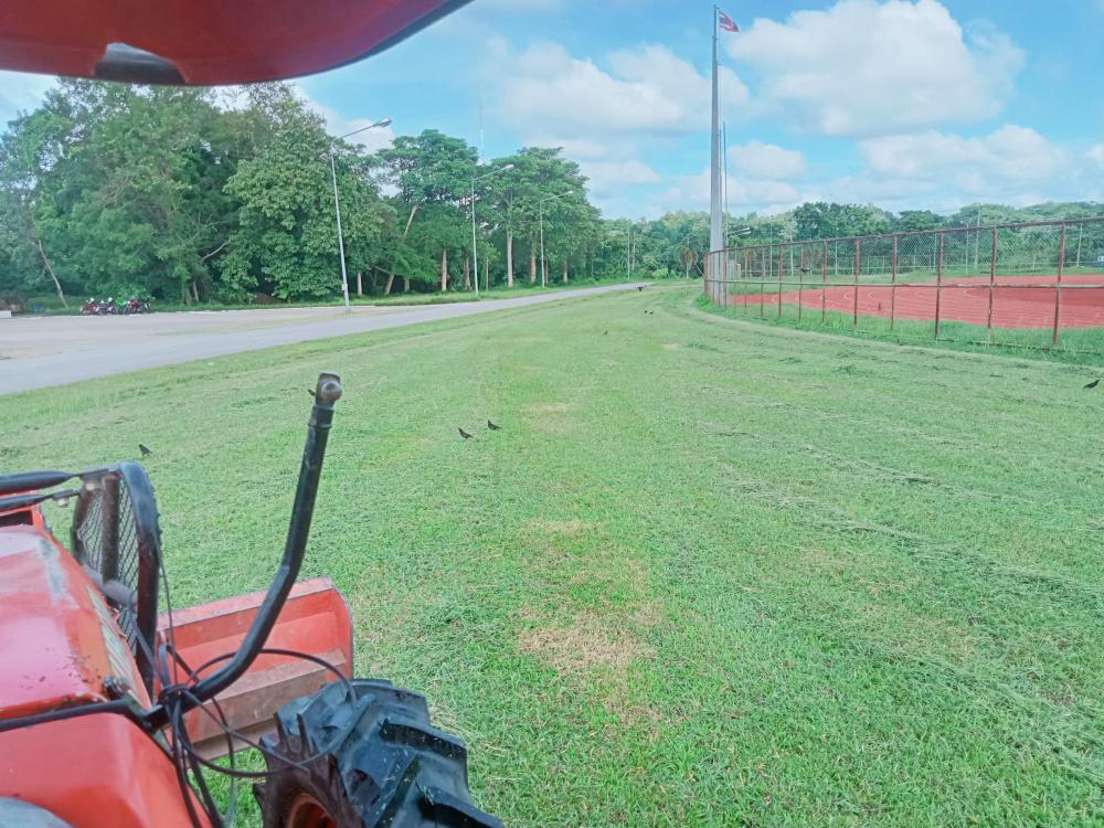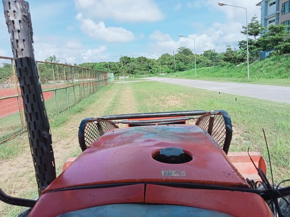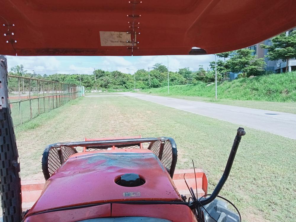 กองบริหารกายภาพฯ ตัดหญ้าโซนสระว่ายน้ำ โรงยิมและด้านนอกสนามฟุตบอล หลังศูนย์สุขภาพ