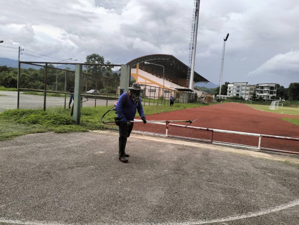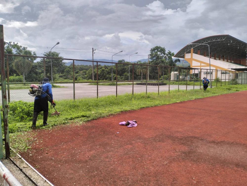 ตัดหญ้าสระว่ายน้ำ โรงยิมและด้านนอกสนามฟุตบอล หลังศูนย์สุขภาพ