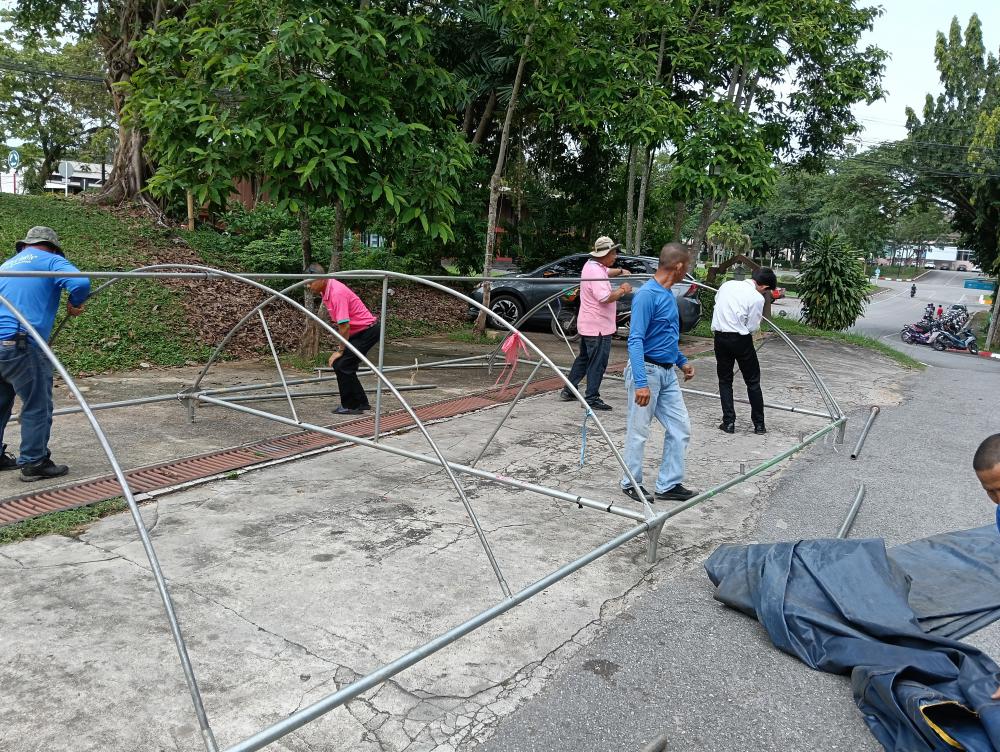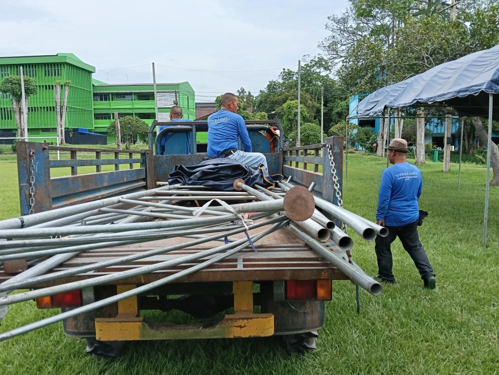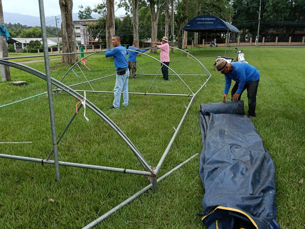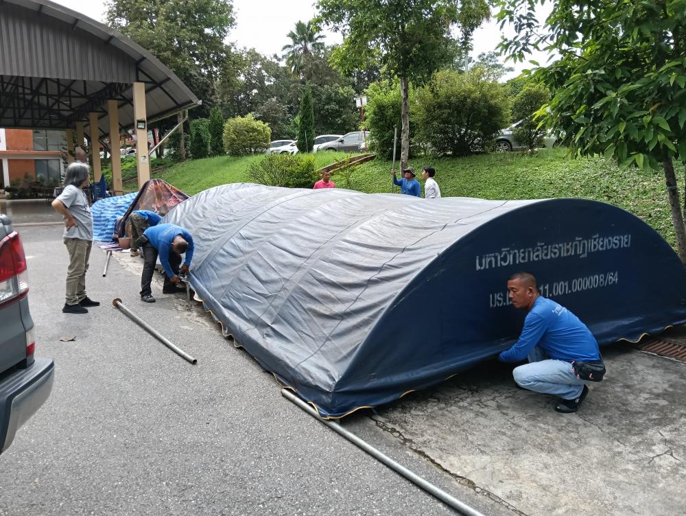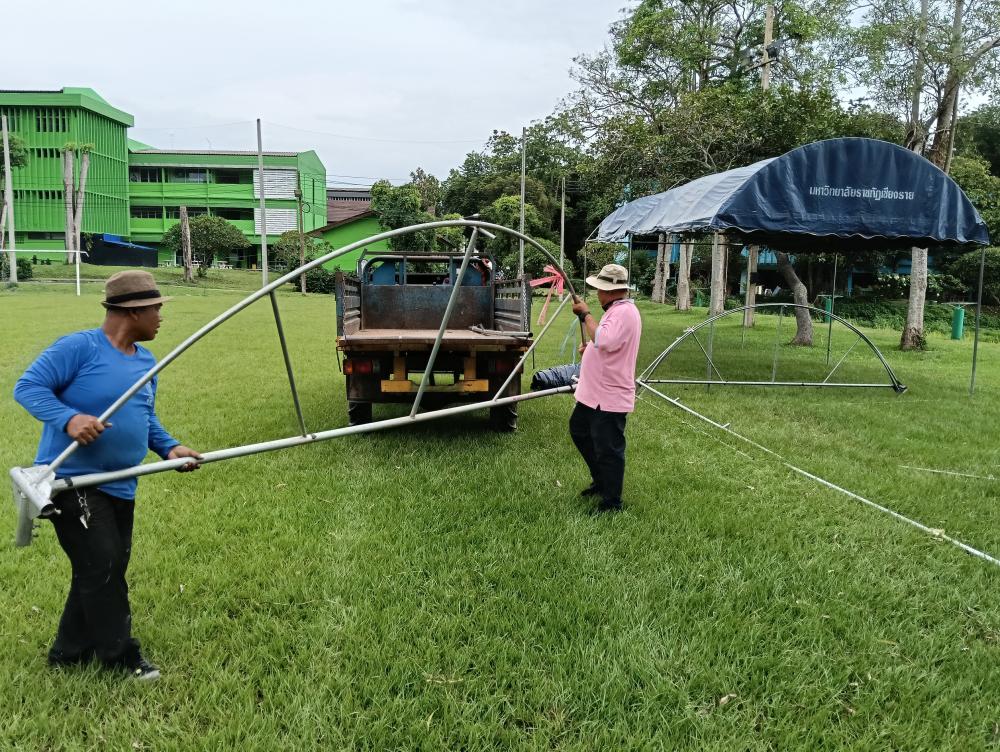 กางเต็นท์ให้นักศึกษาเตรียมงานขบวนแห่เทียนพรรษา