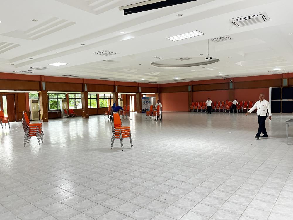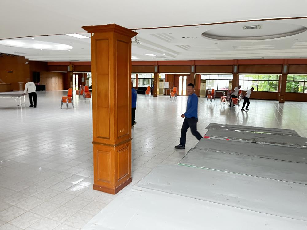 กองกลาง เก็บของต่างๆภายในหอประชุมกาสะลองทำงานเลี้ยงรับรองสถาบันพระปกเกล้า