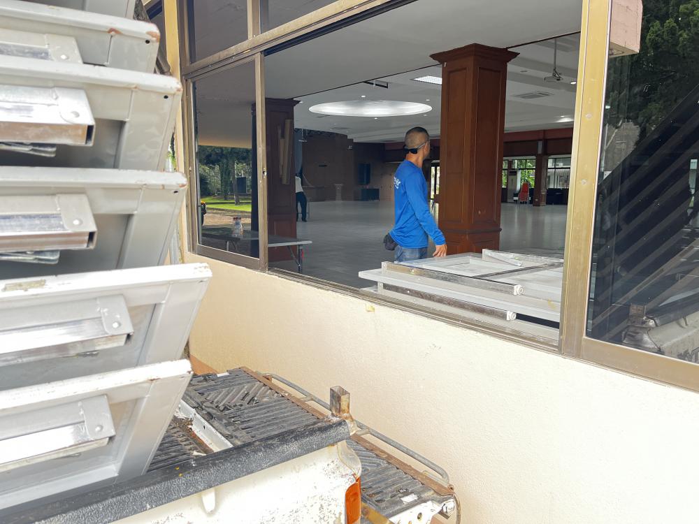 เก็บของต่างๆภายในหอประชุมกาสะลองคำงานเลี้ยงรับรองสถาบันพระปกเกล้า