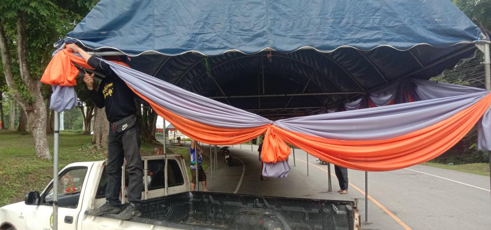 กางเต็นท์ให้นักศึกษาเตรียมงานขบวนแห่เทียนพรรษา จำนวน 2 หลัง