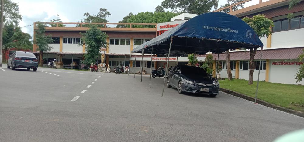 คณะสังคมศาสตร์ กางเต็นท์ให้นักศึกษาเตรียมงานขบวนแห่เทียนพรรษา จำนวน 2 หลัง