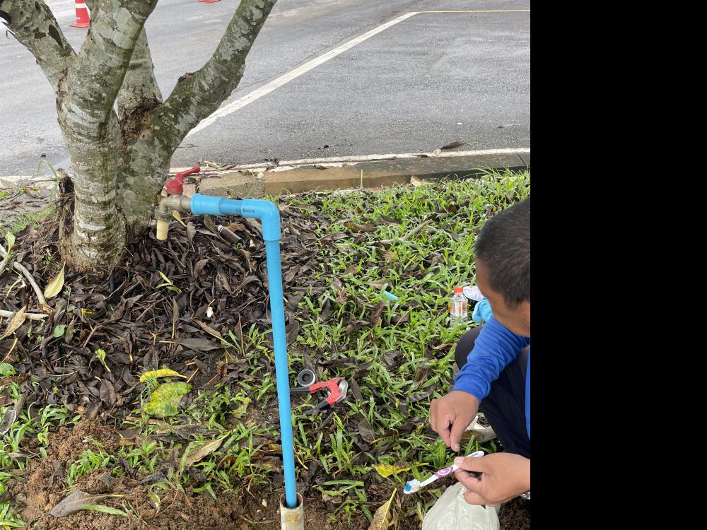 ทีมภูมิทัศน์แจ้งท่อน้ำบริเวณประตู 1 แตก