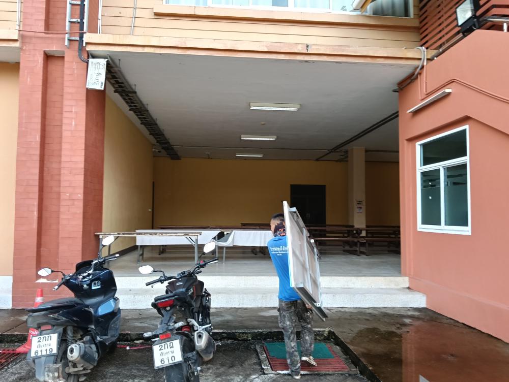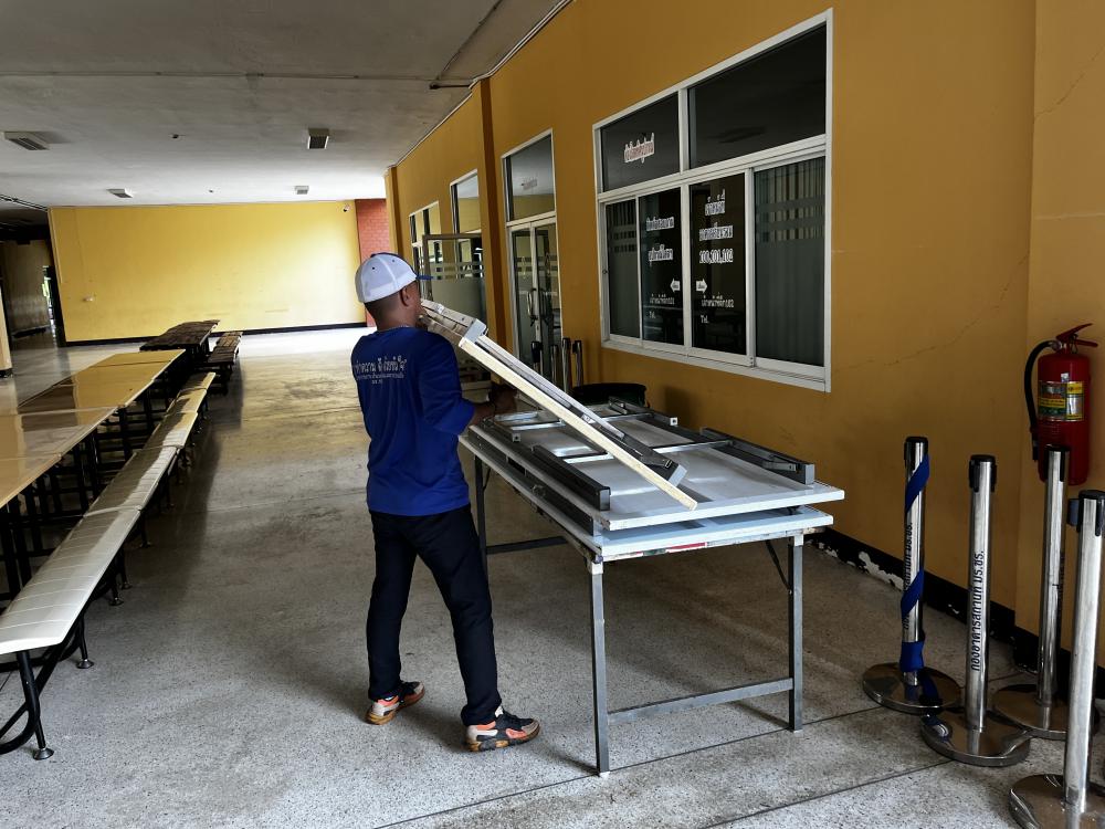 ขนโต๊ะพับขาว จำนวน 3 ตัว ไปอาคารเรียนรวม 101 งานสอบวัดระดับภาษาเกาหลี