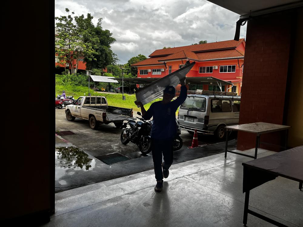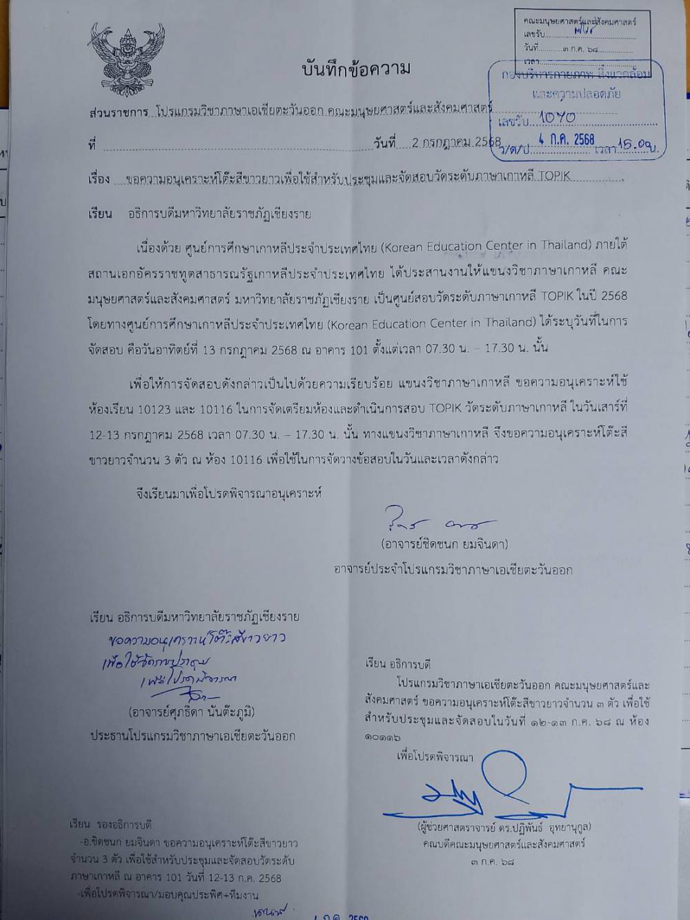 คณะมนุษยศาสตร์ฯ ขนโต๊ะพับขาว จำนวน 3 ตัว ไปอาคารเรียนรวม 101 งานสอบวัดระดับภาษาเกาหลี