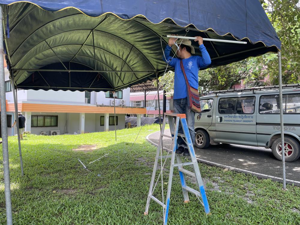 กองบริหารกายภาพฯ ติดตั้งไฟส่องสว่าง กิจกรรมงานประชุมวิชาการระดับนานาชาติ สมาคมนักเทคโนโลยี ครั้งที่ 2 (TTA Conference 2025) ณ คณะเทคโนโลยีอุตสาหกรรม วันที่ 18 ก.ค. 2568 ดังนี้ ไฟส่องสว่างภายในเต้นท์ 10 ชุด ไฟส่องสว่างสนาม 4 ชุด