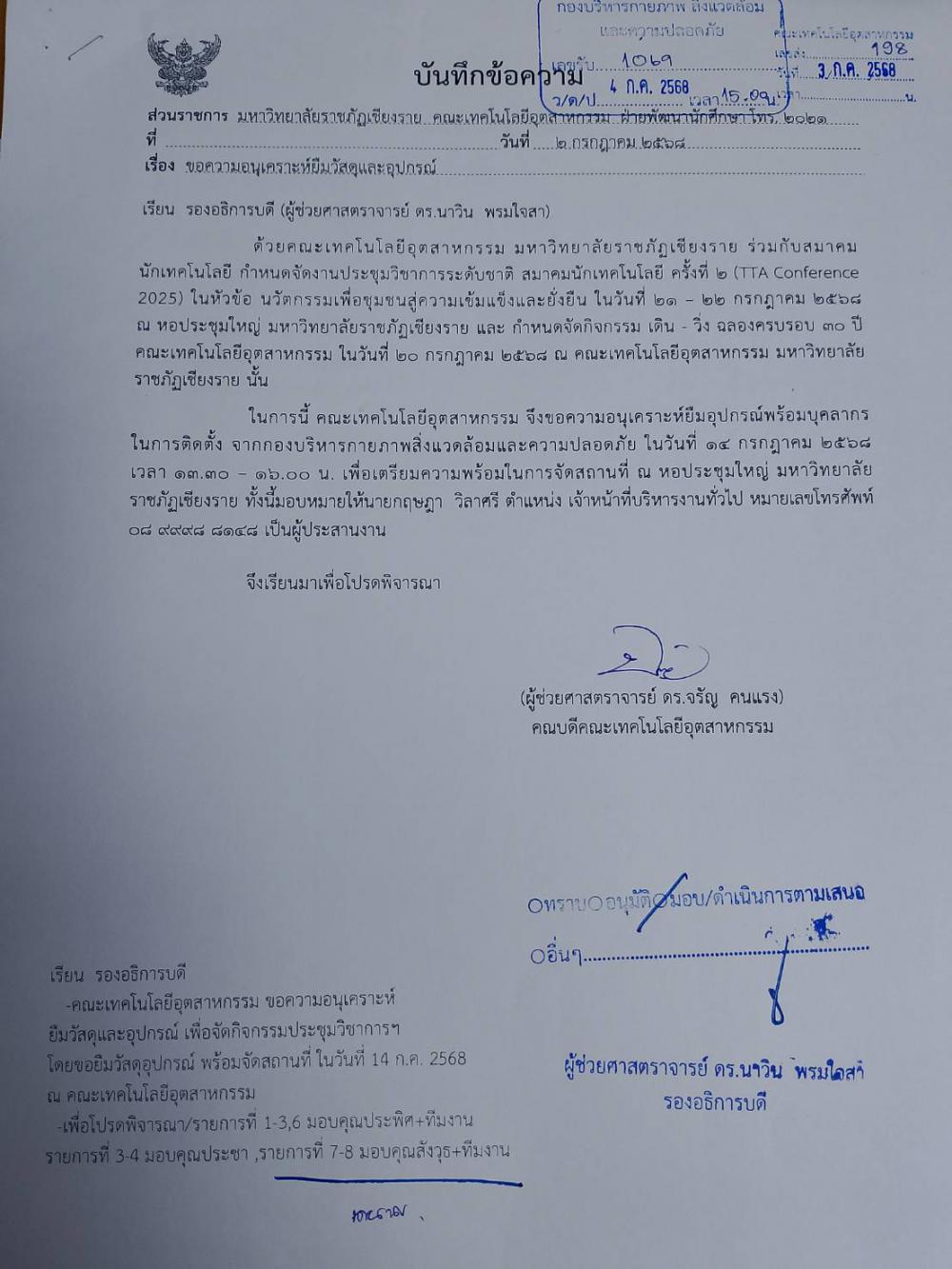 ติดตั้งไฟส่องสว่าง กิจกรรมงานประชุมวิชาการระดับนานาชาติ สมาคมนักเทคโนโลยี ครั้งที่ 2 (TTA Conference 2025) ณ คณะเทคโนโลยีอุตสาหกรรม