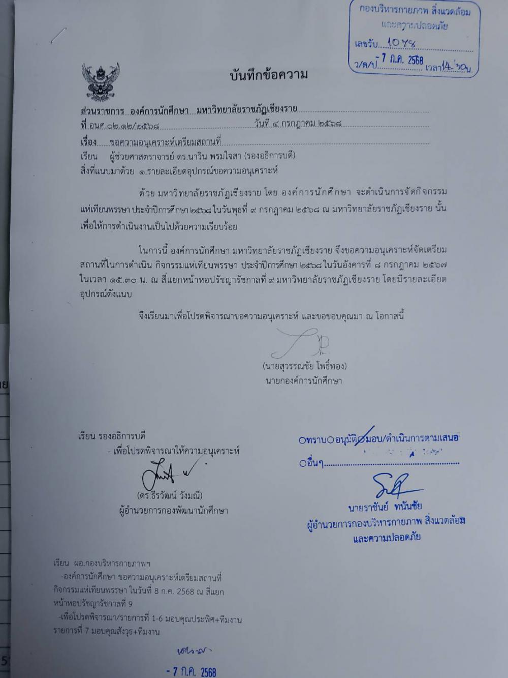 กองพัฒนานักศึกษา จัดสถานที่กิจกรรมแห่เทียนพรรษา ประจำปี 2568 ณ สี่แยกหน้าหอปรัชญา รัชกาลที่ 9