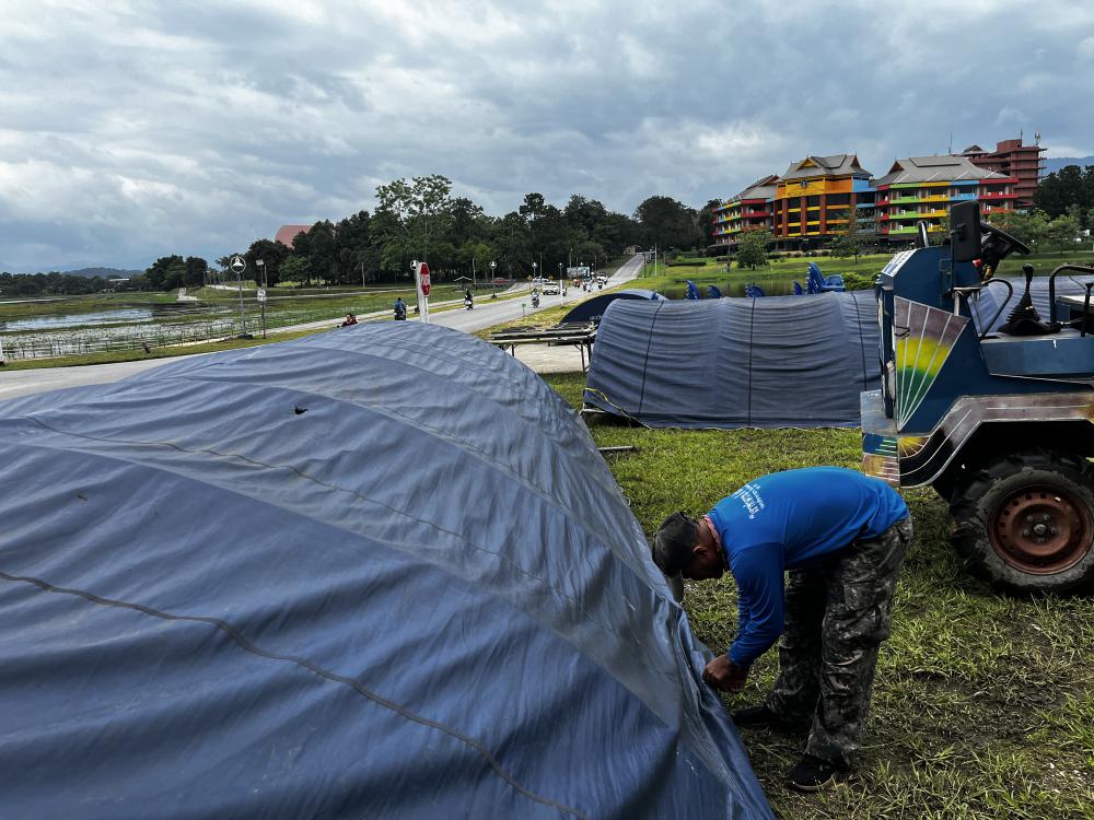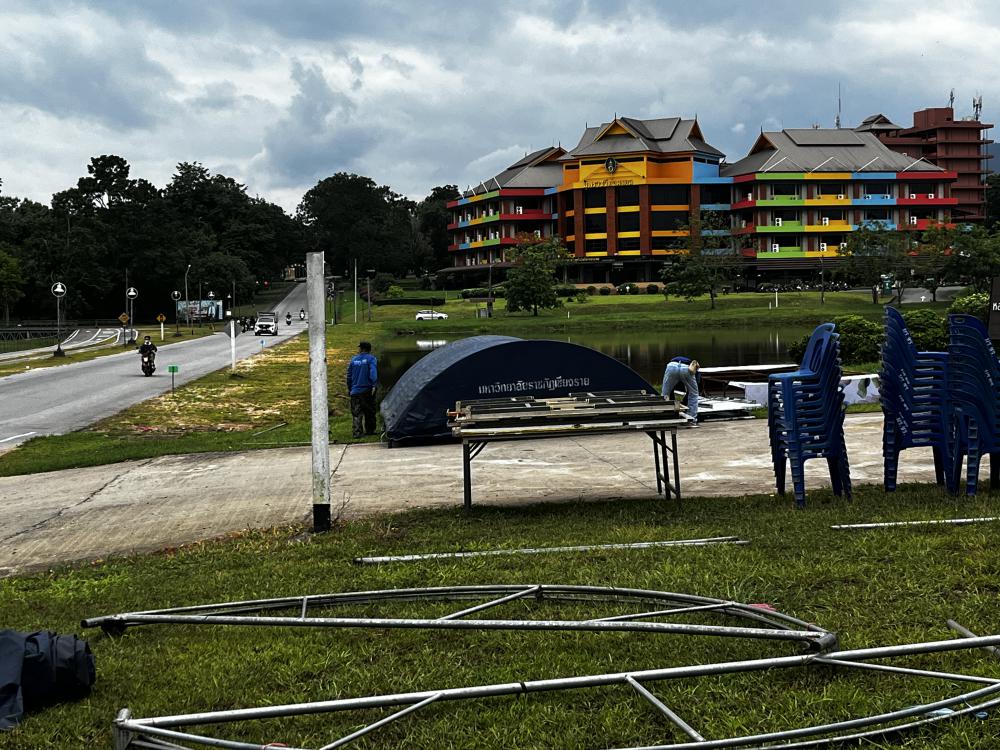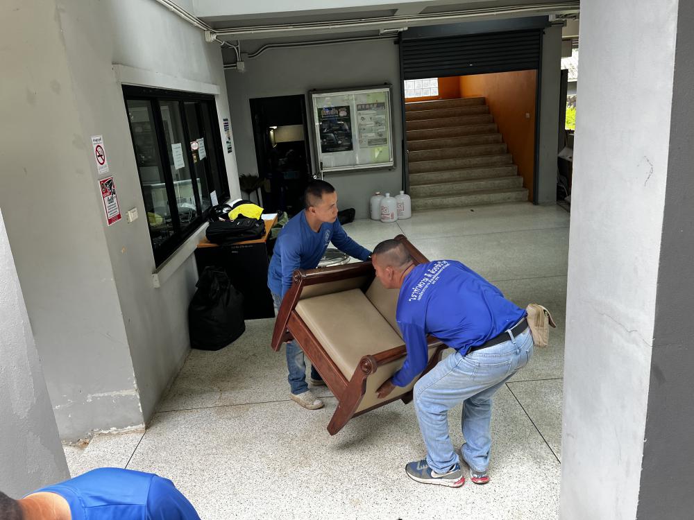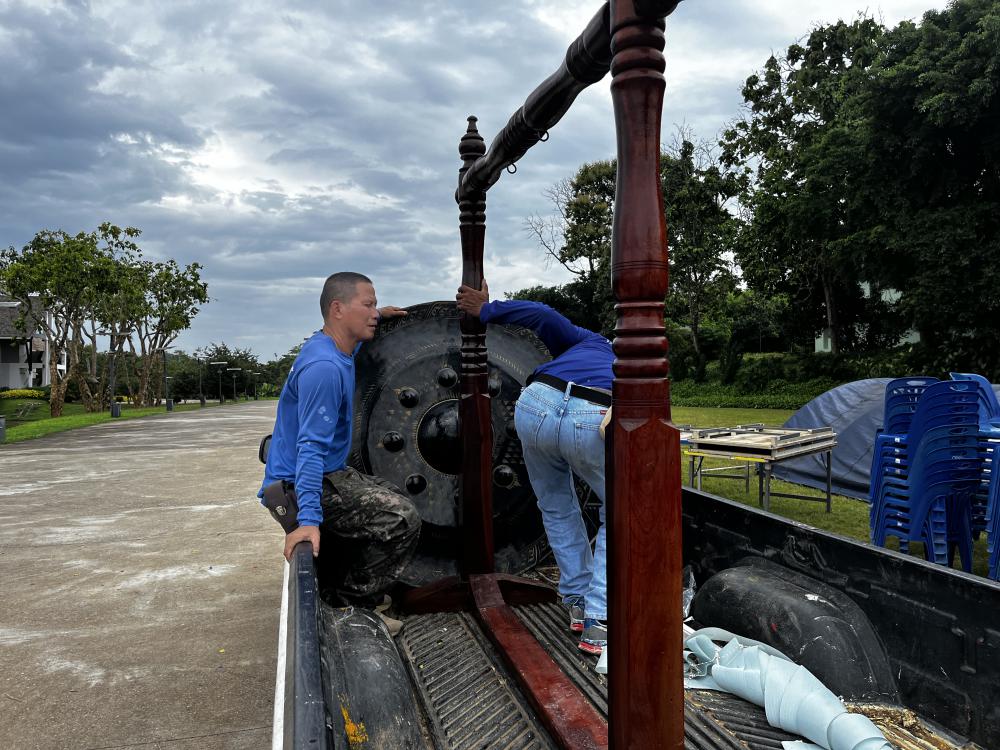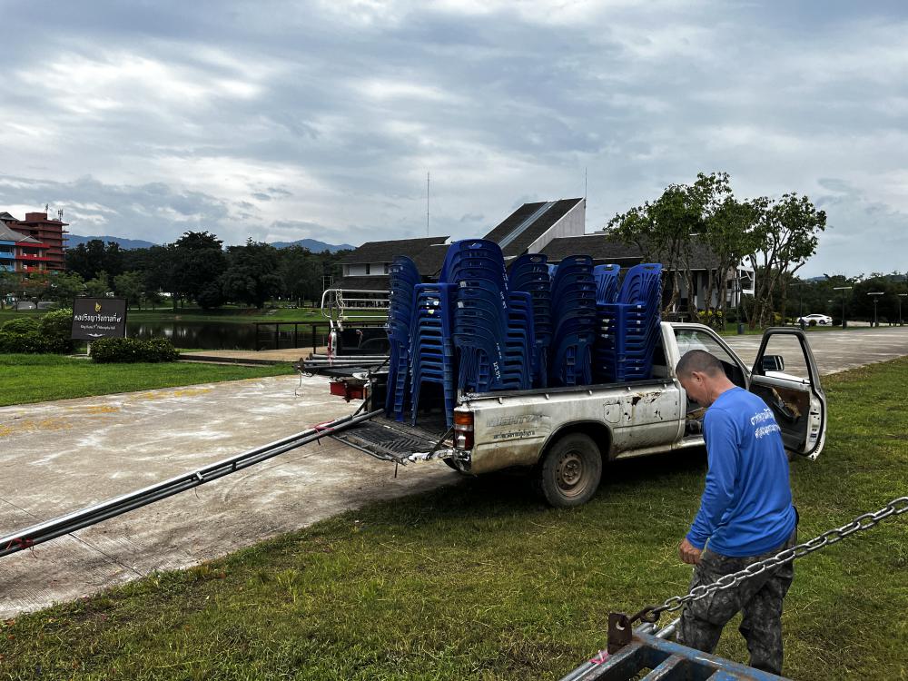 กองพัฒนานักศึกษา เก็บอุปกรณ์ต่างๆหลังเสร็จสิ้นพิธีแห่เทียนพรรษา
