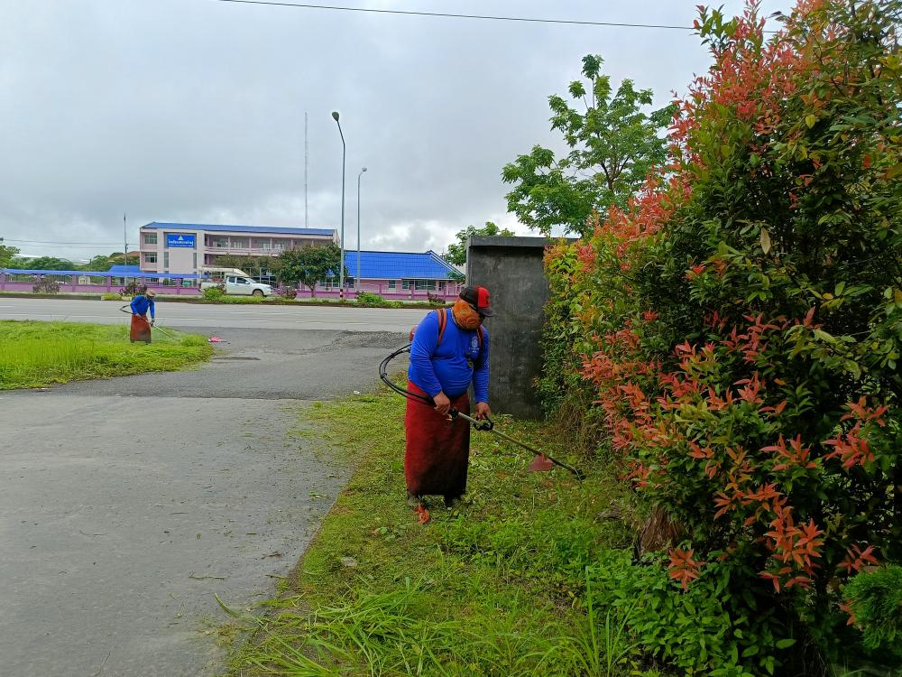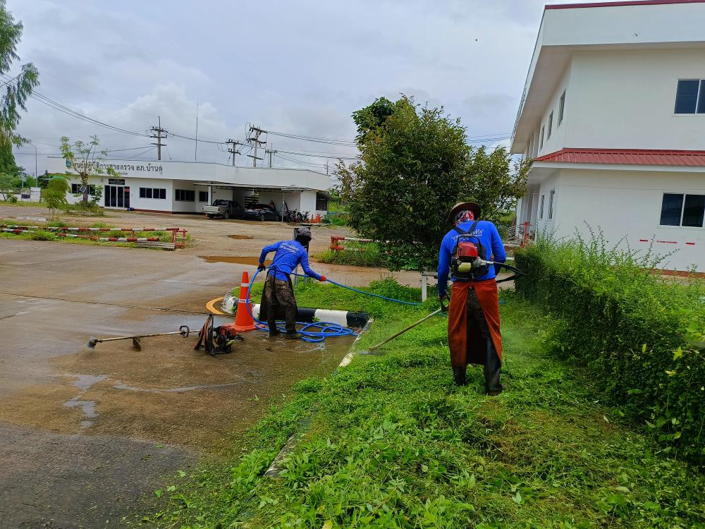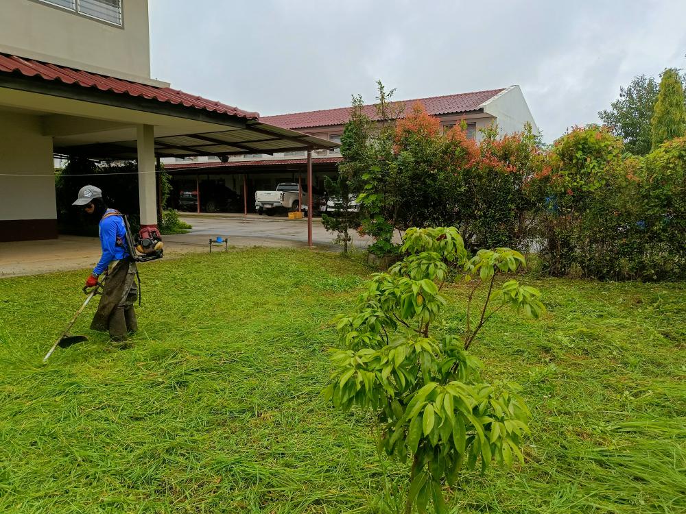 กองบริหารกายภาพฯ ตัดหญ้าสถานีตำรวจบ้านดู่