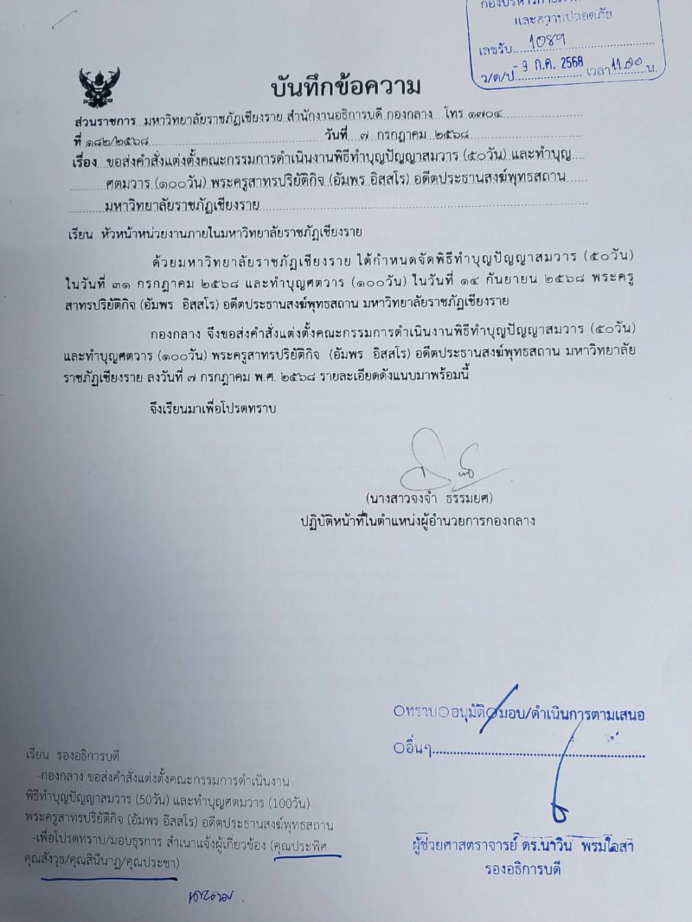 กองกลาง จัดสถานที่ พิธีทำบุญปัญญาสมวาร (50 วัน) พระครูสาทรปริยัติกิจ (อัมพร อิสฺสโร) ณ พุทธสถาน วันที่ 31 กรกฎาคม 2568